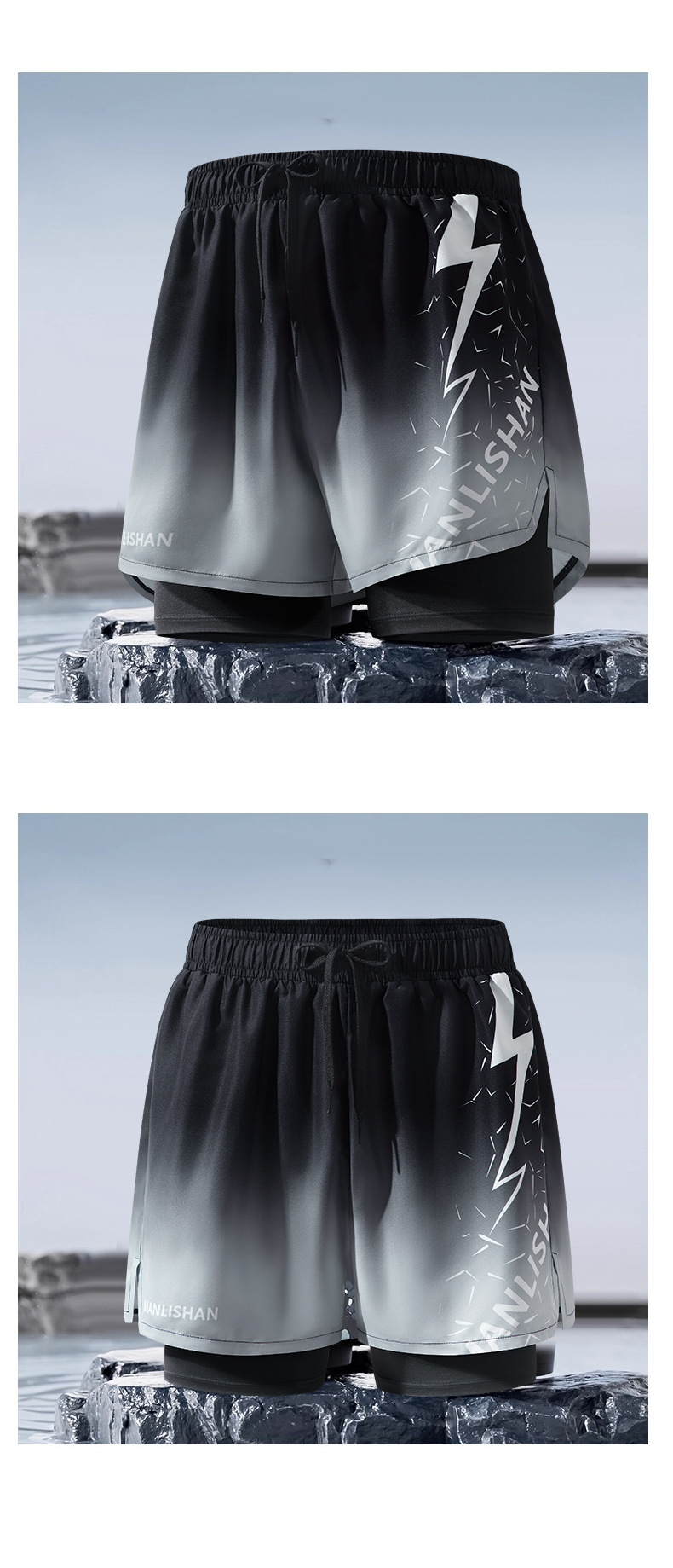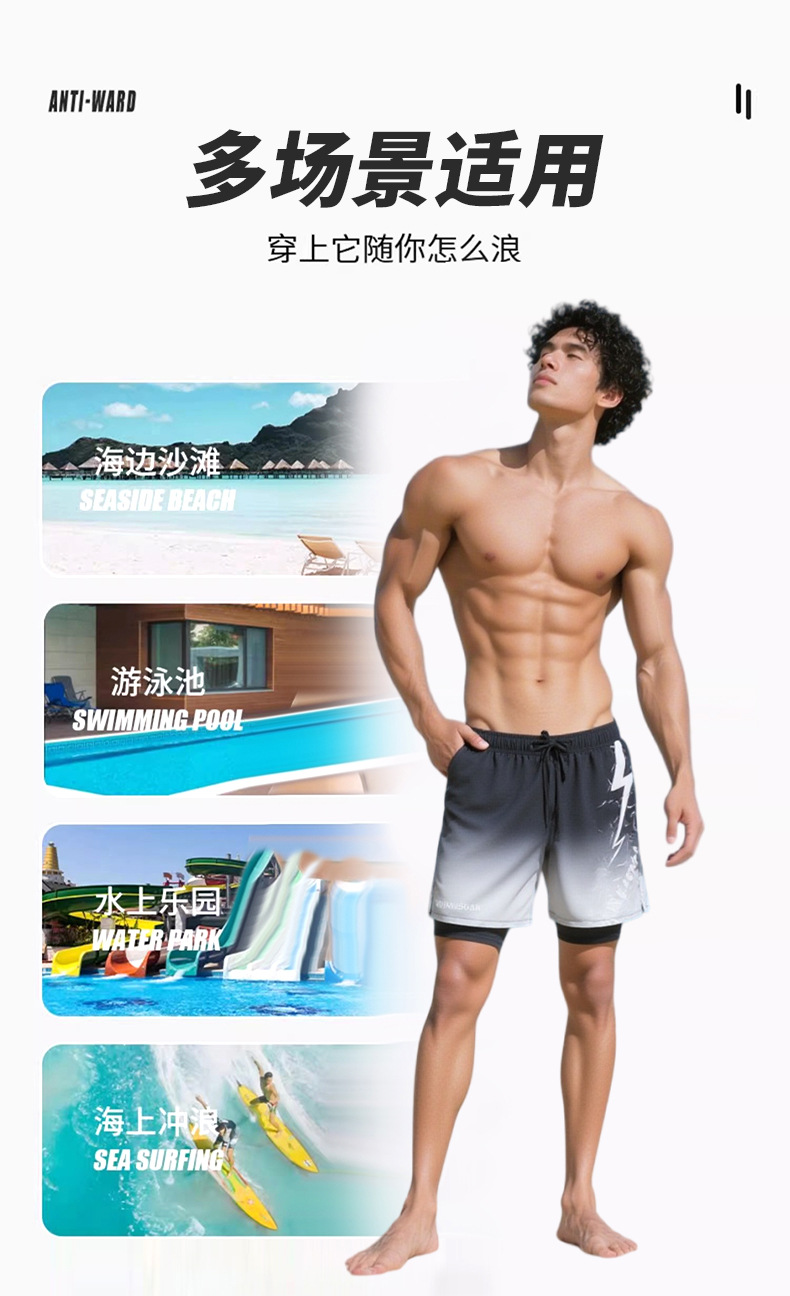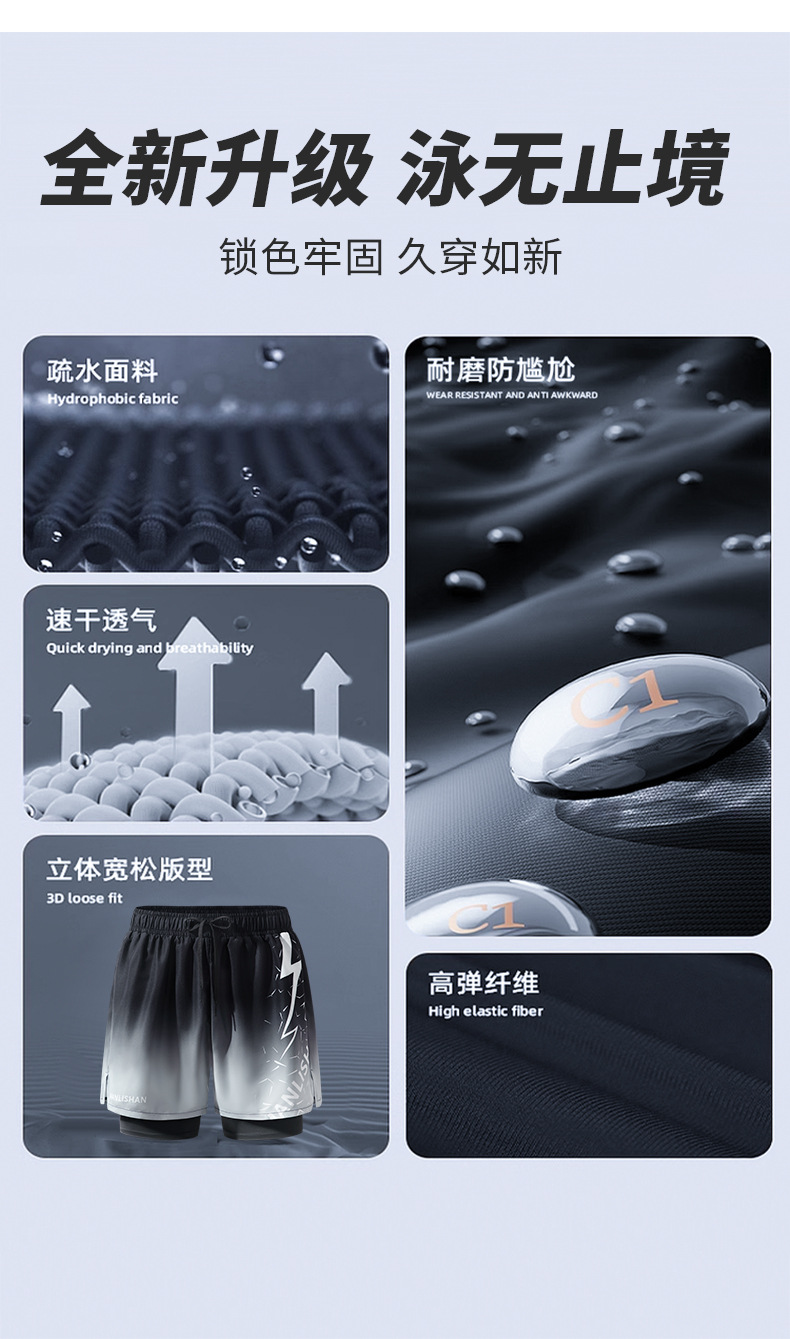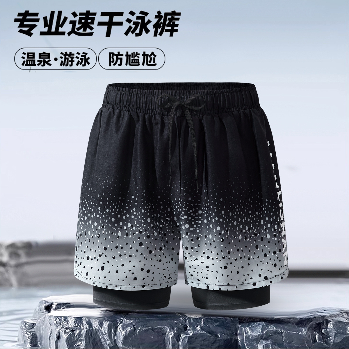 남자의 가짜 두 조각 더블 레이어 속건 수영 트렁크 플러스 사이즈 통기성 안티 당황 수영 트렁크 새로운 느슨한 수영 스포츠 트렁크스토어 가기