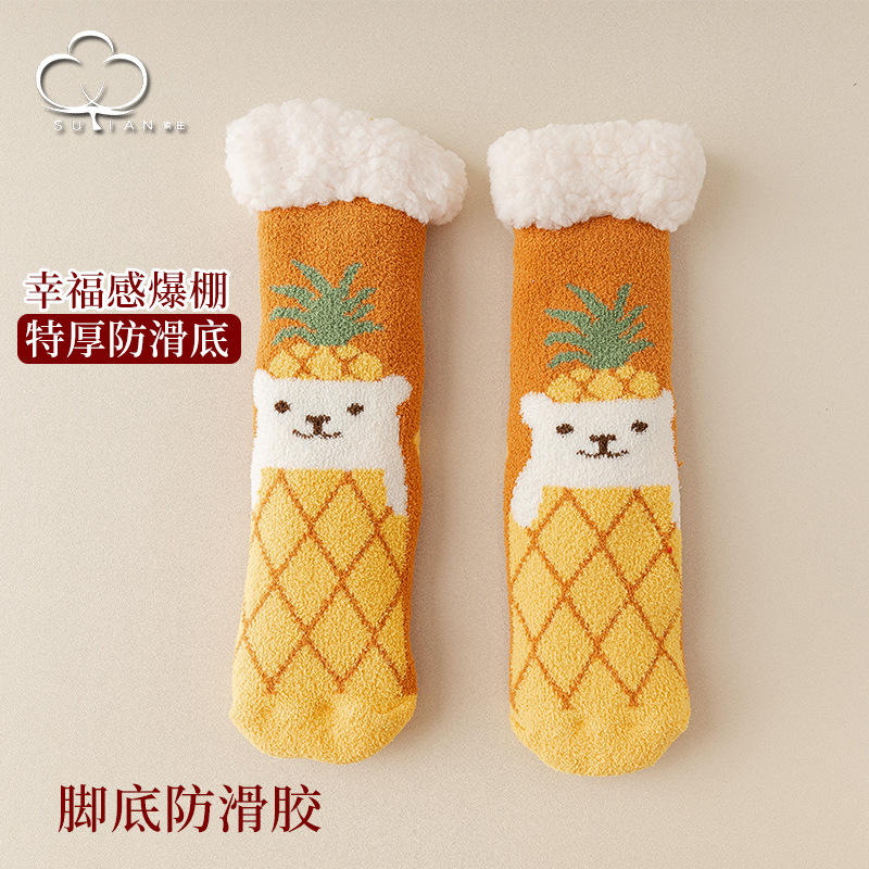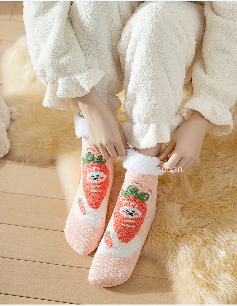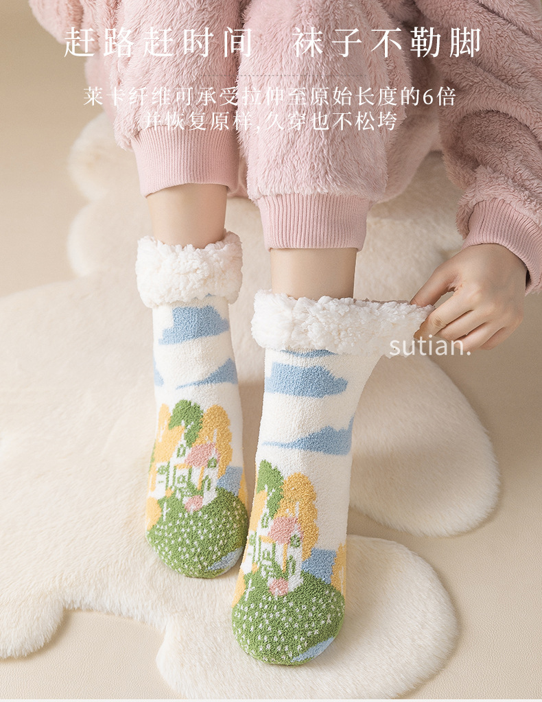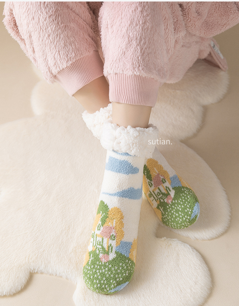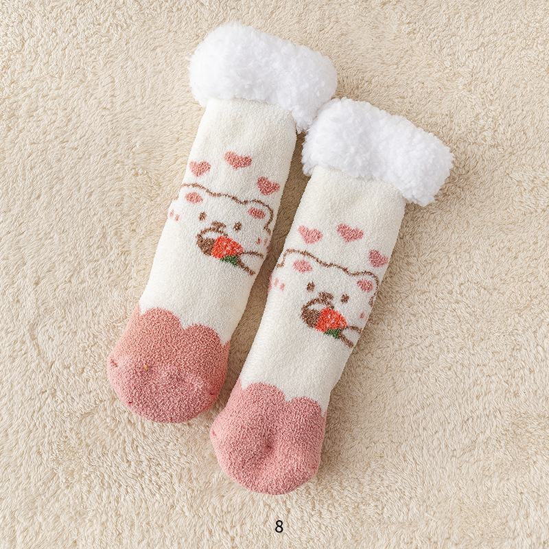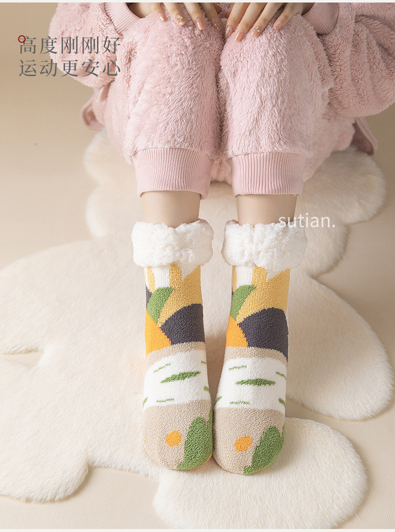 겨울 바닥 양말 홈 양말 어린이 겨울 양말 기모 두꺼운 눈 양고기 벨벳 여성 양말 귀여운 따뜻한 양말