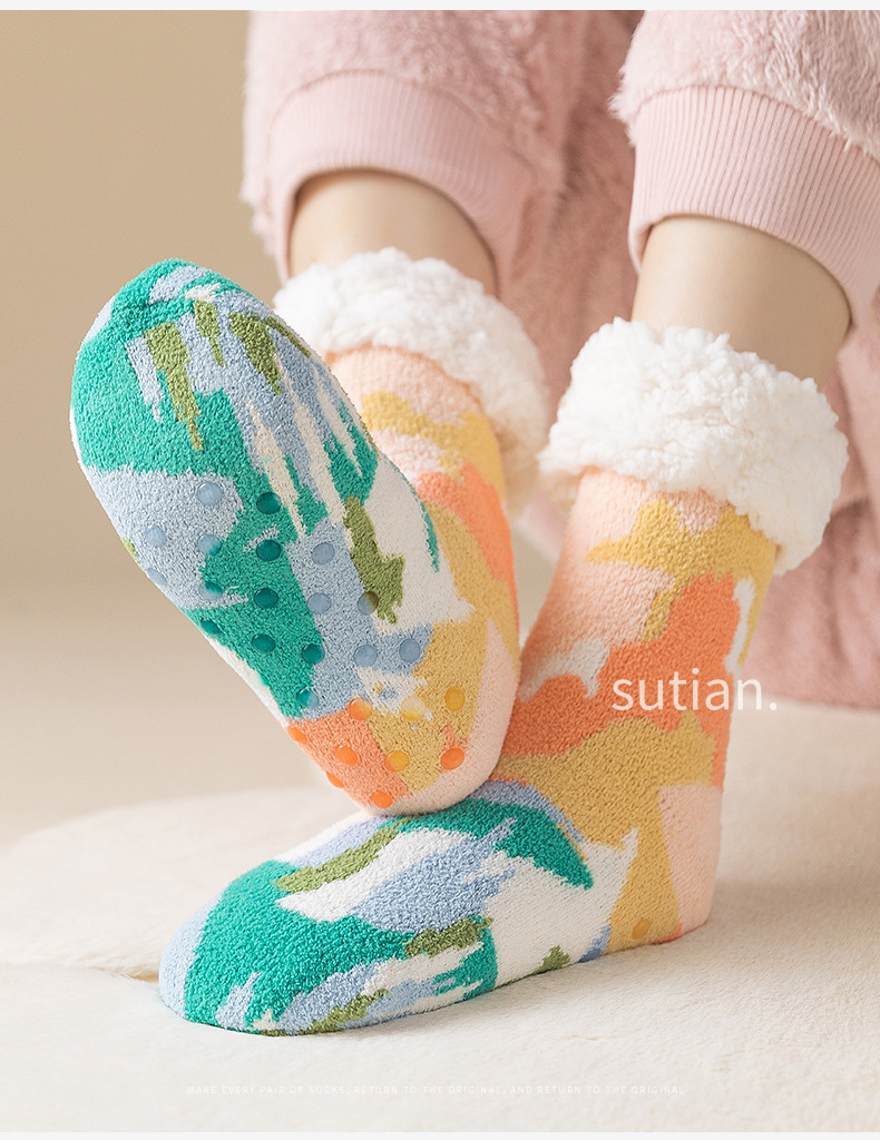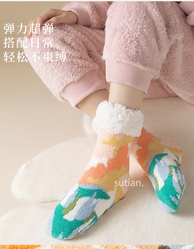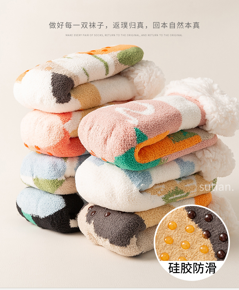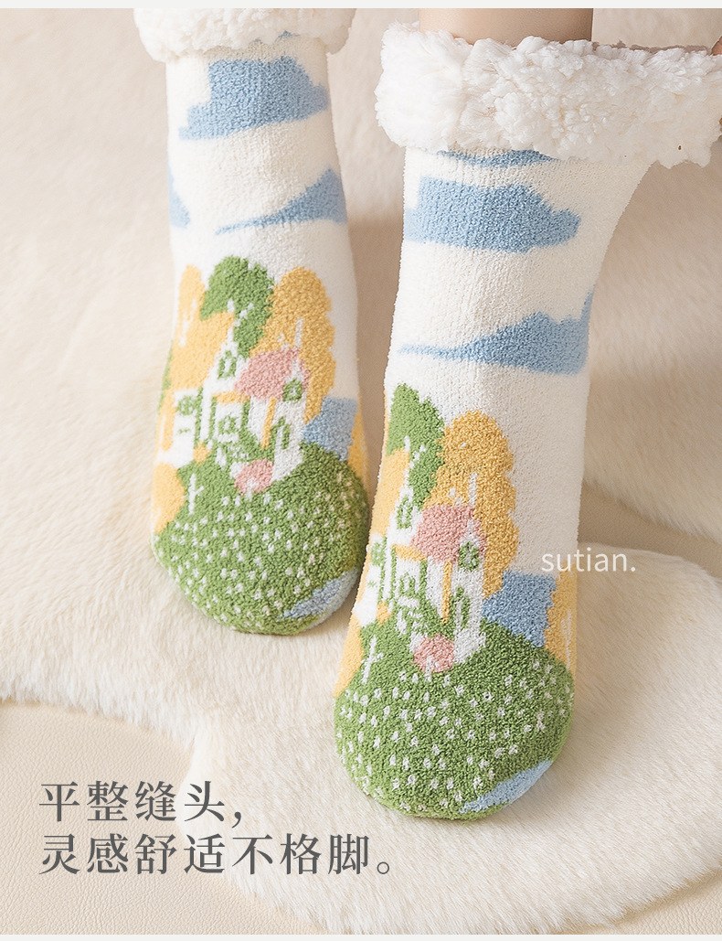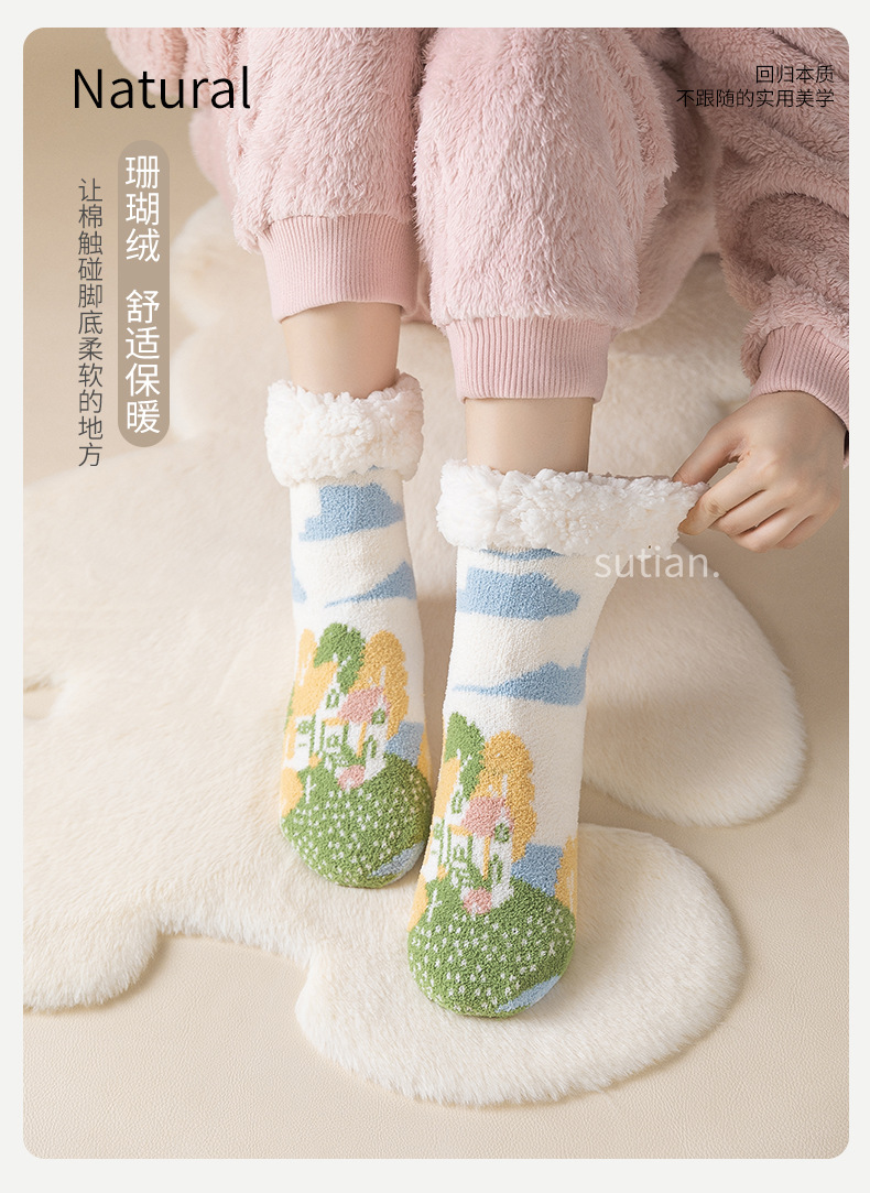 겨울 바닥 양말 홈 양말 어린이 겨울 양말 기모 두꺼운 눈 양고기 벨벳 여성 양말 귀여운 따뜻한 양말