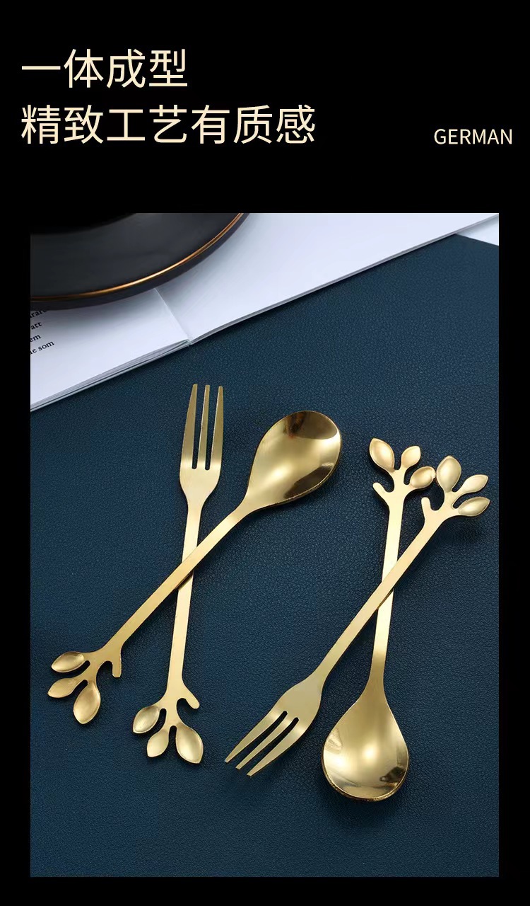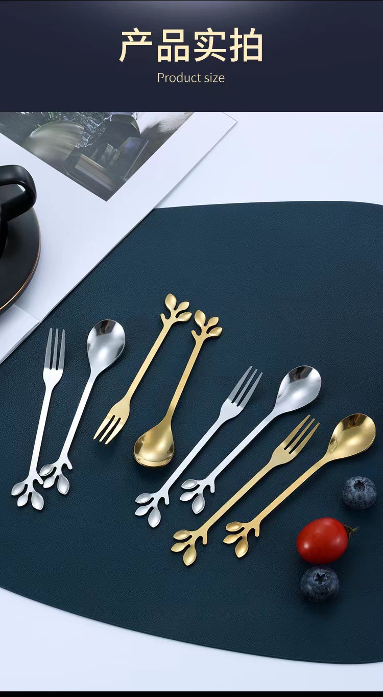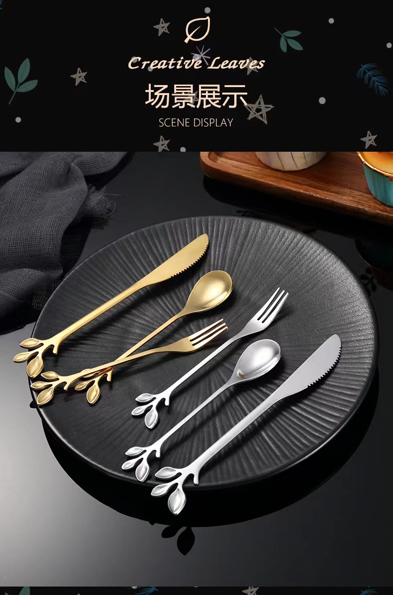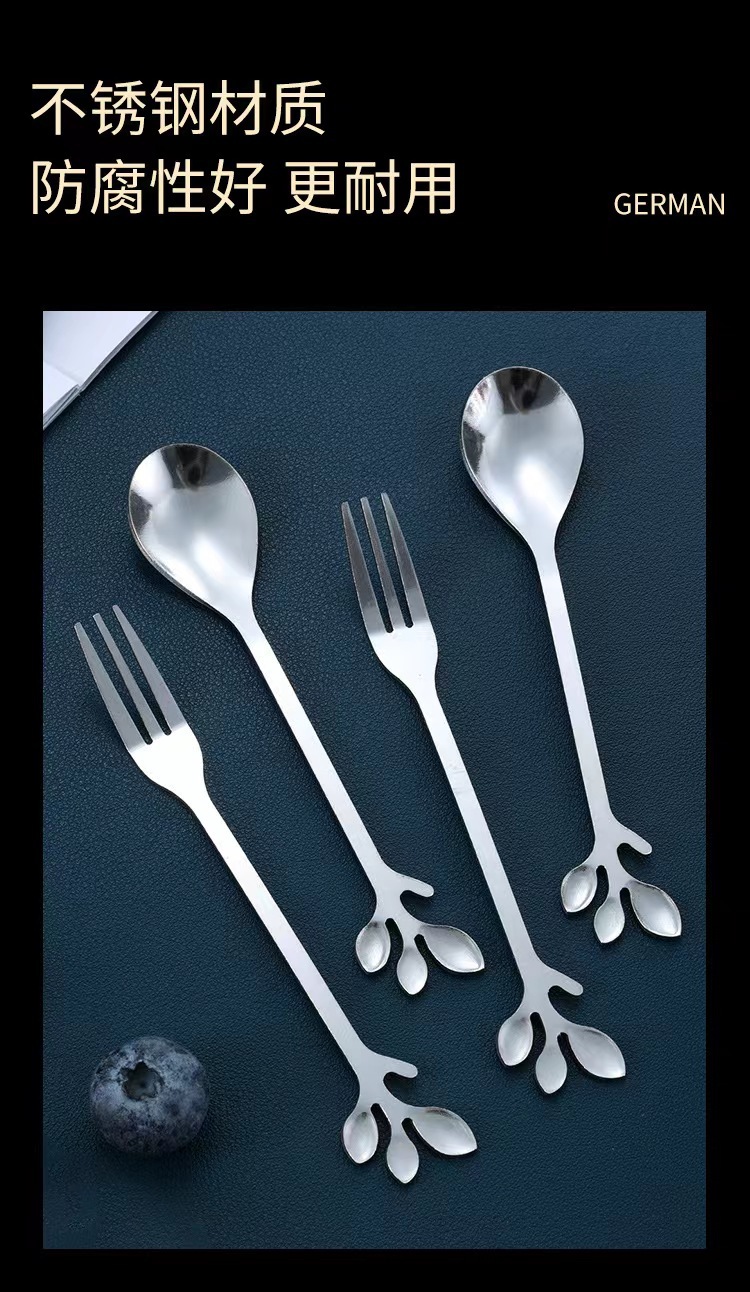 크리 에이 티브 스테인레스 스틸 잎 스푼 포크 문 케이크 나이프 포크 커피 믹싱 스푼 디저트 스푼 과일 포크 스푼 새의 둥지 스푼