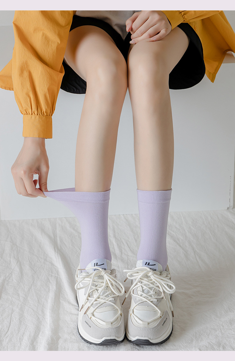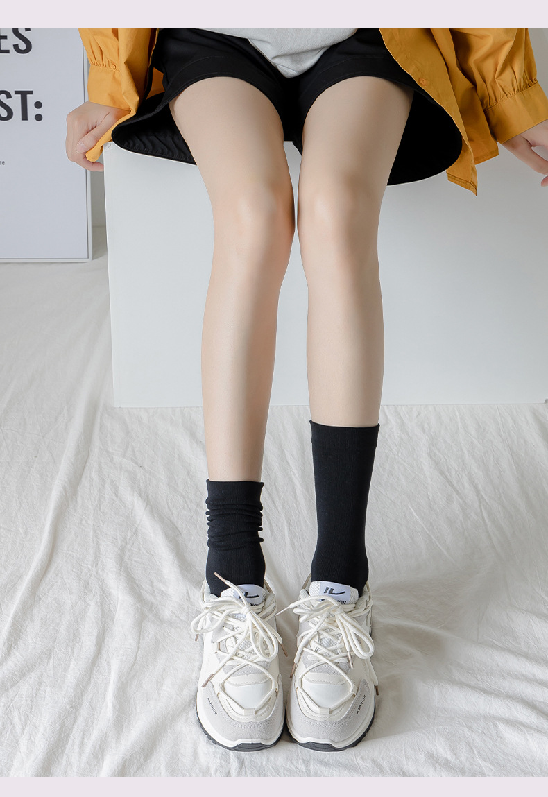 흑백 우유 흰색 얇은 느슨한 흰색 뼈없는 양말 달 양말 가을과 겨울 단색 튜브 양말면 양말을 쌓아 올렸습니다.스토어 가기