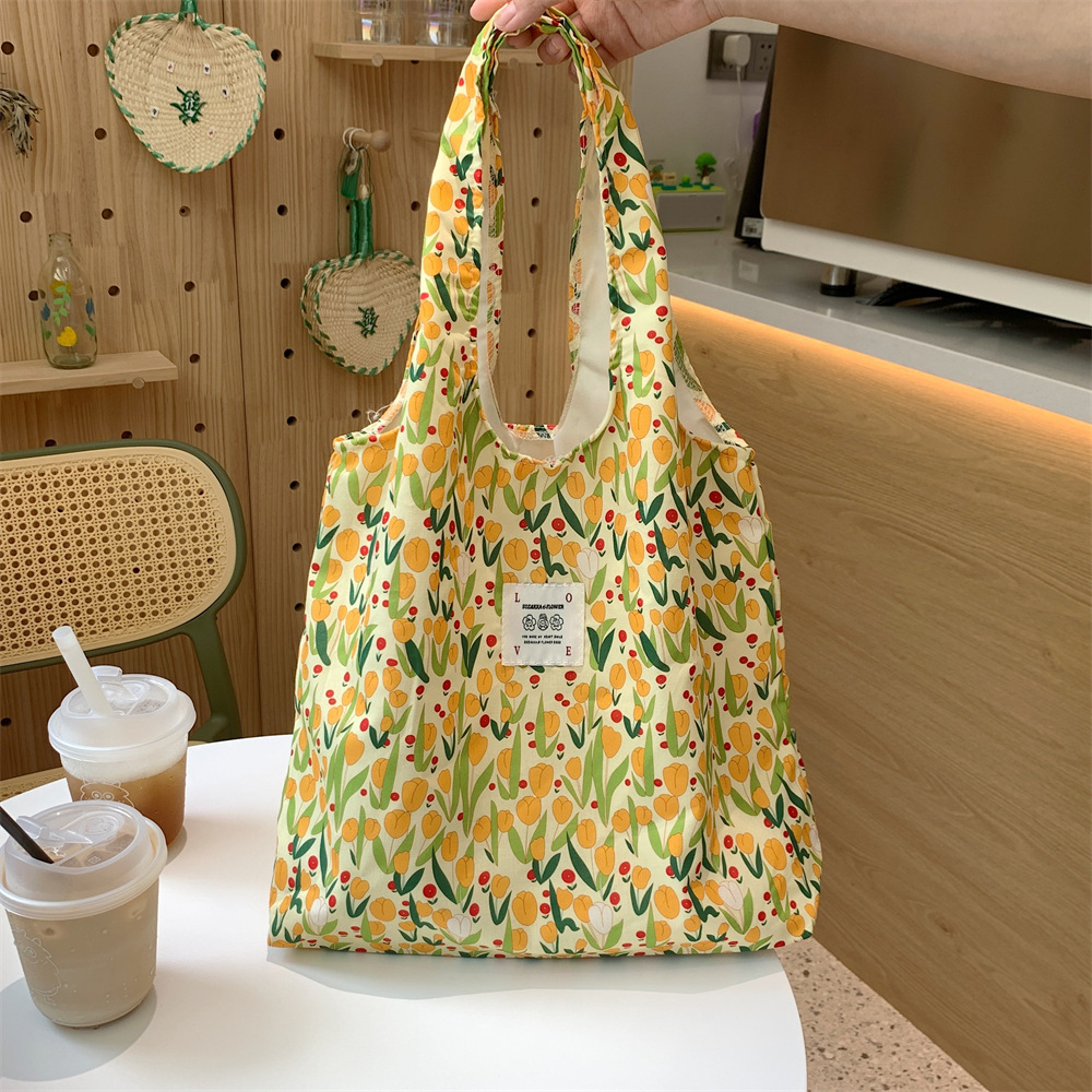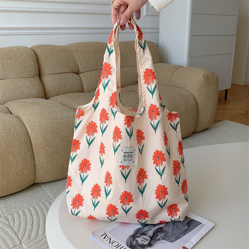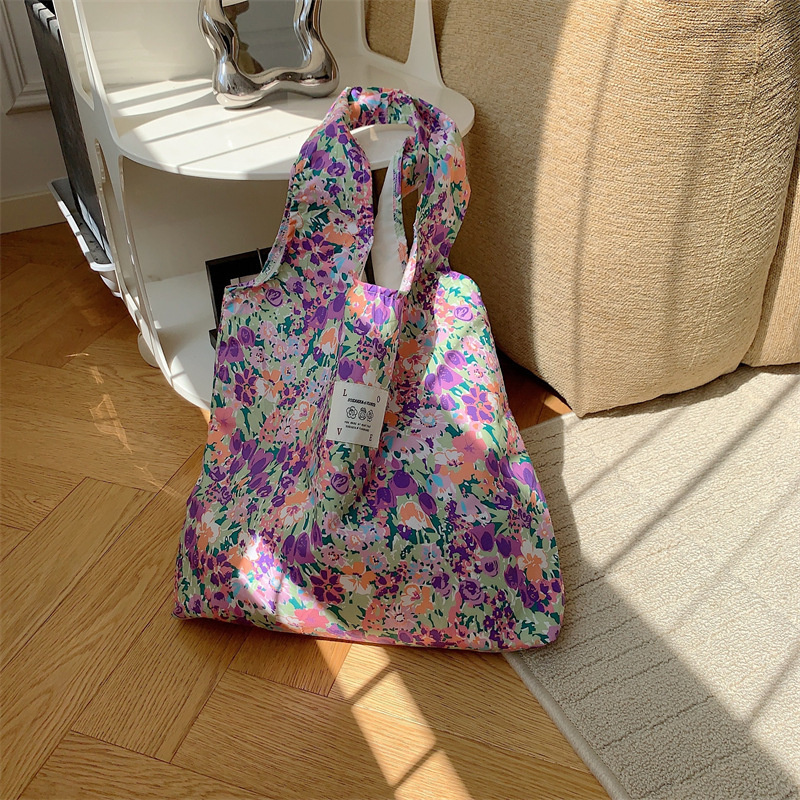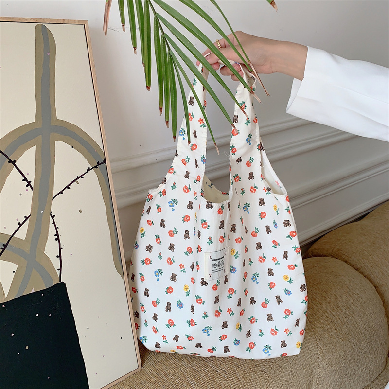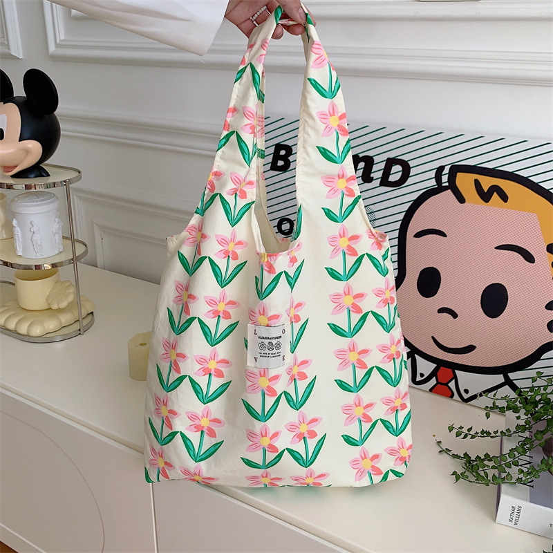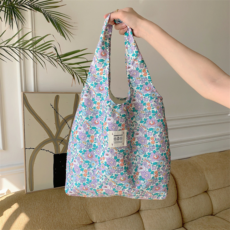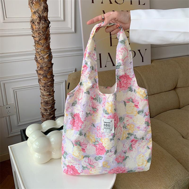 35204 여름 in 플로럴 프린트 고급 캔버스 가방 소형 신선한 스타일 대용량 조끼 가방 쇼핑백