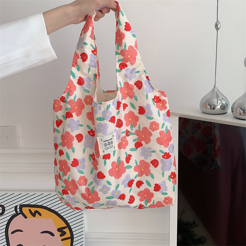35204 여름 in 플로럴 프린트 고급 캔버스 가방 소형 신선한 스타일 대용량 조끼 가방 쇼핑백스토어 가기