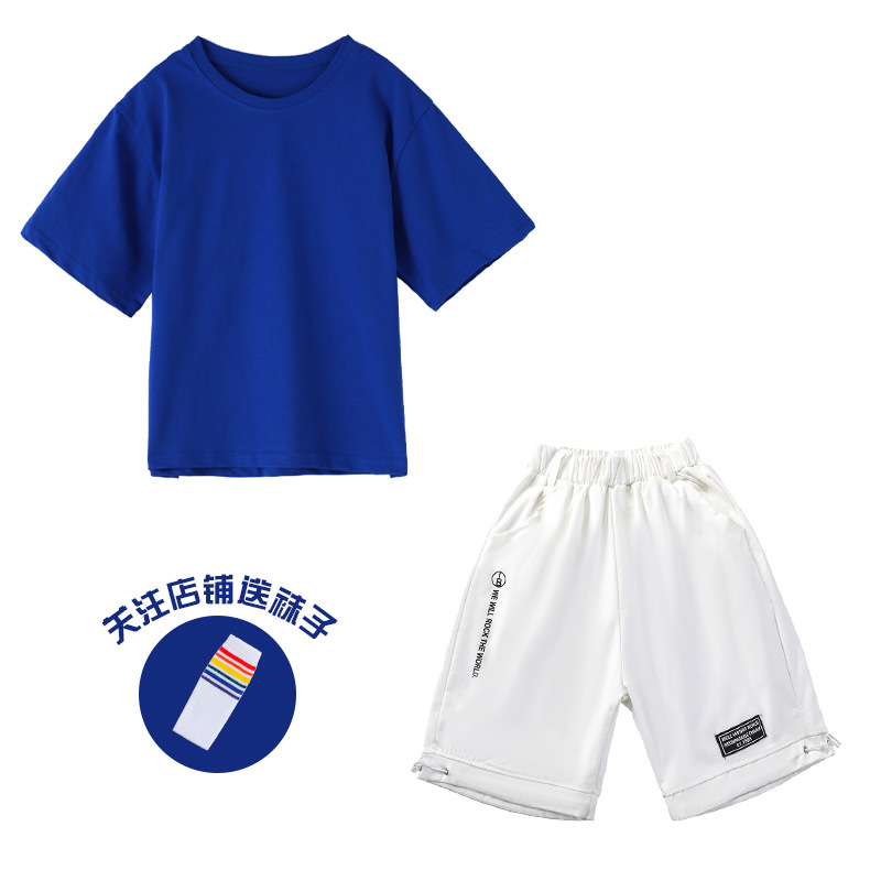 • A186 사파이어 블루 반팔 + B57 화이트 반바지 + 레인보우 양말