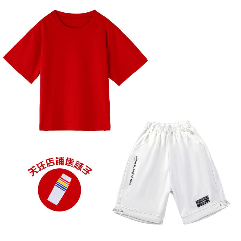 • A186 레드 반팔 + B57 화이트 반바지 + 레인보우 양말