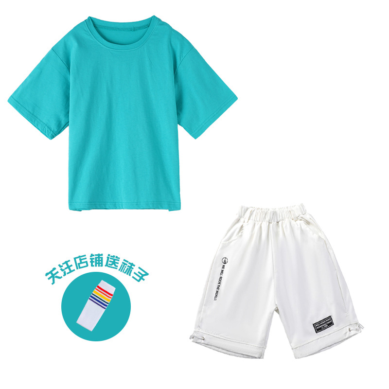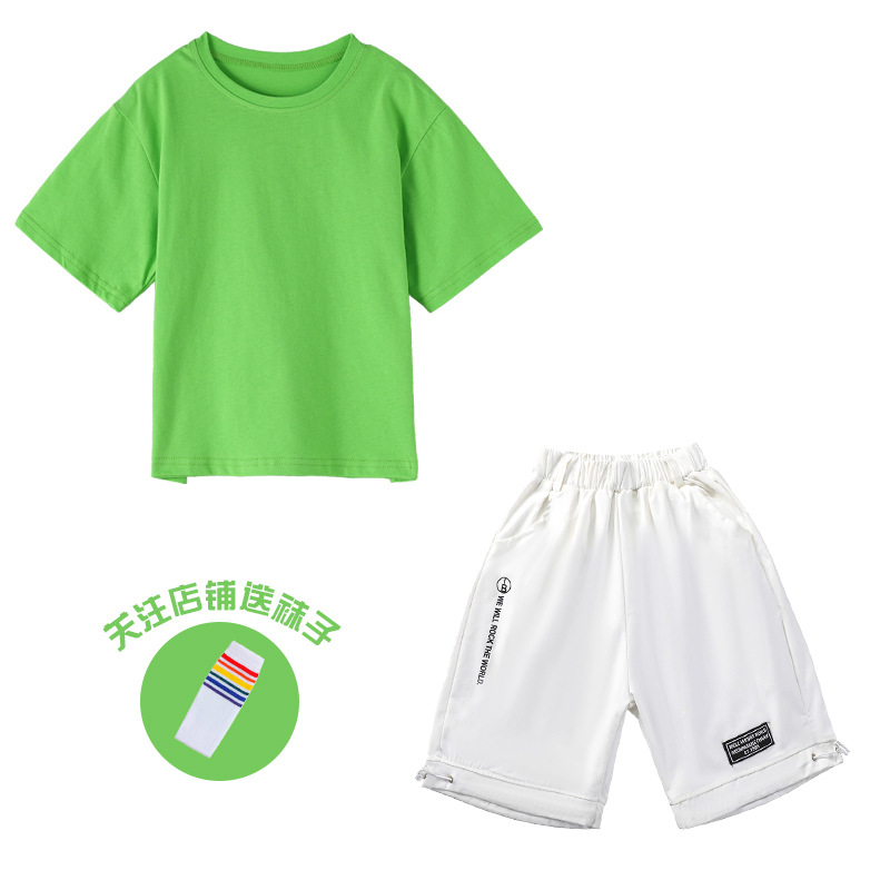• A186 녹색 반팔 + B57 흰색 반바지 + 무지개 양말