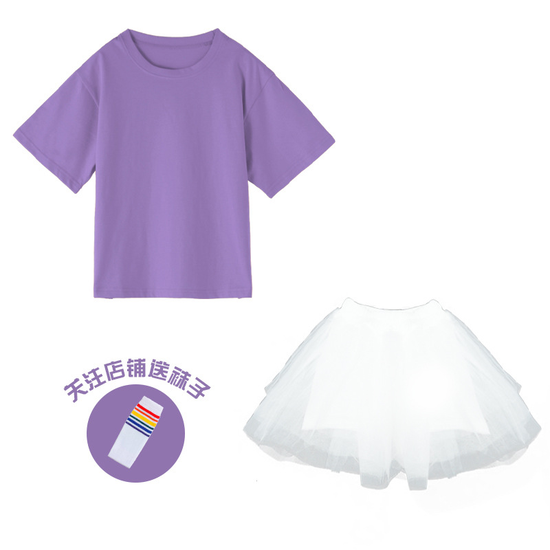 • A186 라이트 퍼플 반팔 + B223 화이트 스커트 + 레인보우 양말