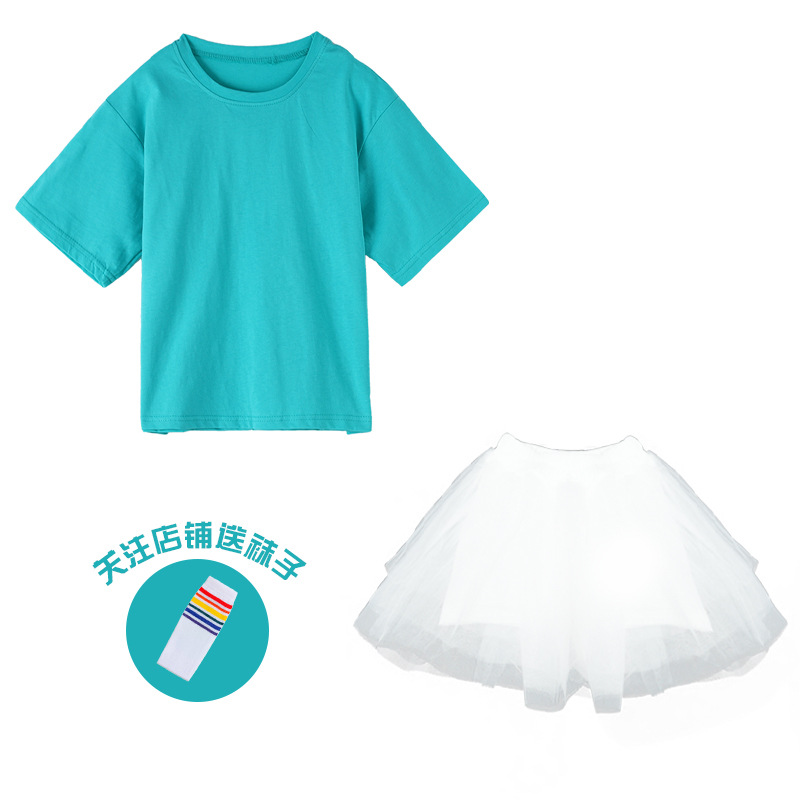 • A186 그린 반팔 + B223 화이트 스커트 + 레인보우 양말