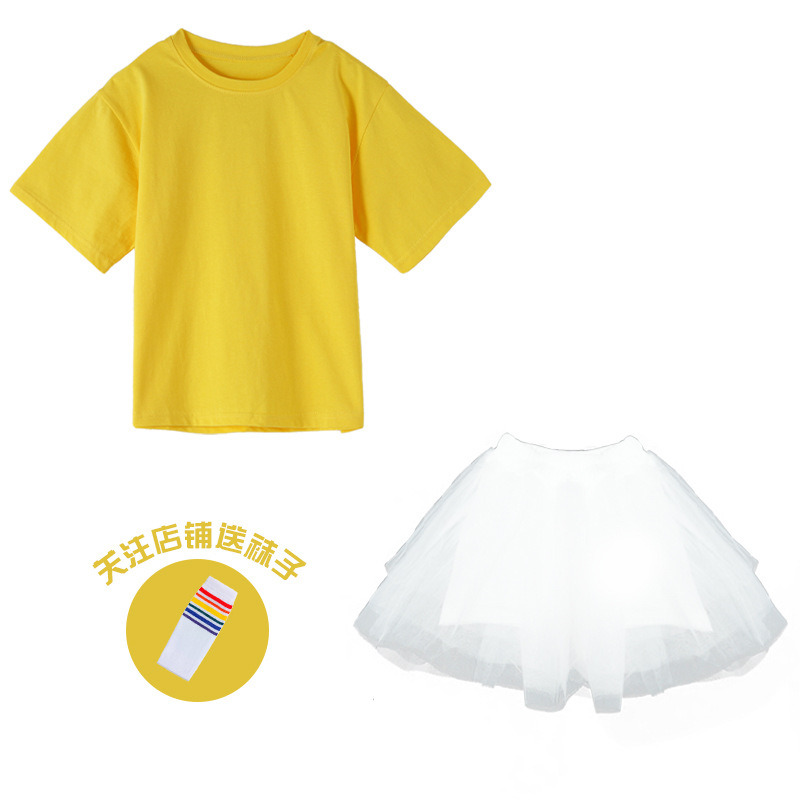 • A186 옐로우 반팔 + B223 화이트 스커트 + 레인보우 양말