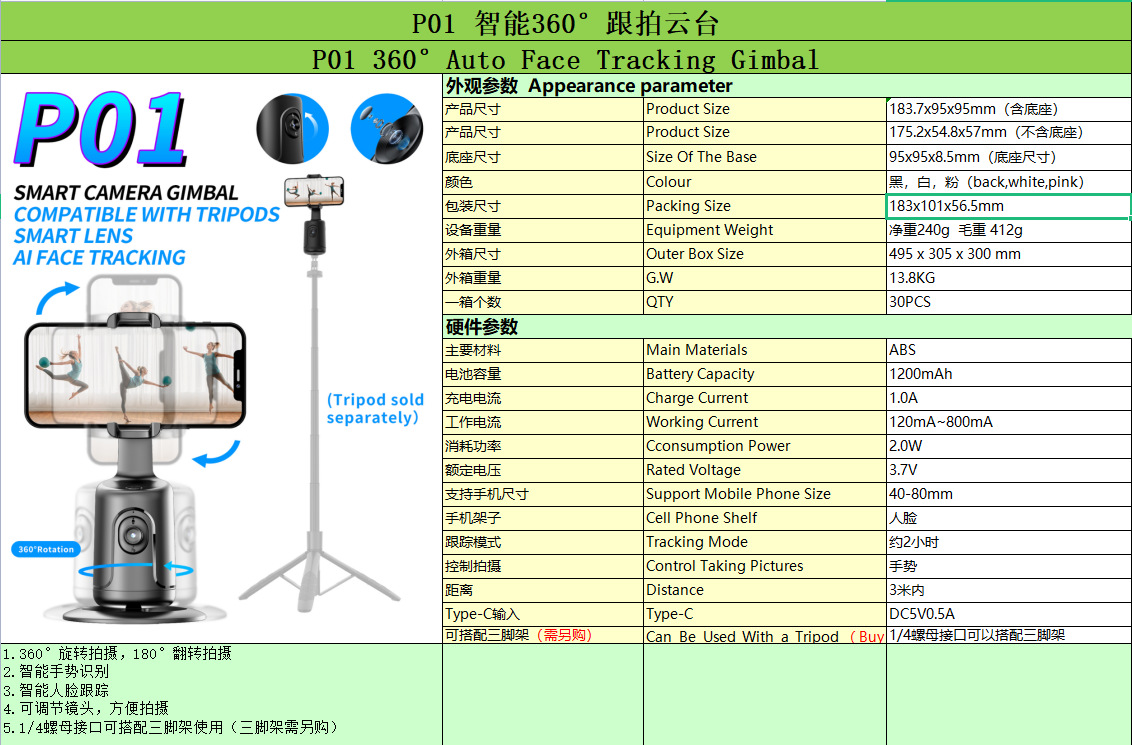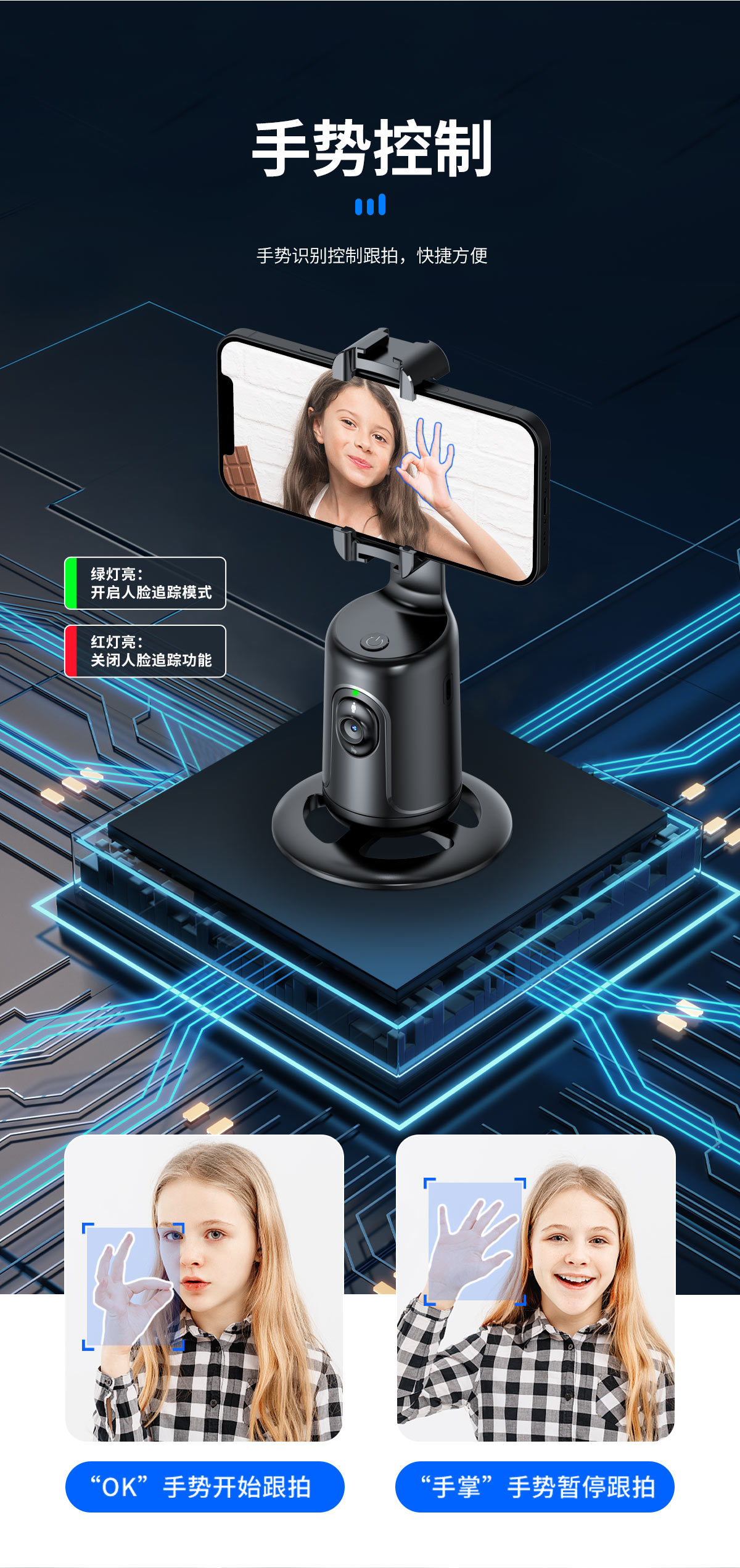 휴대 전화 후속 Yuntai 지능형 AI 얼굴 인식 360 안정기 흔들림 방지 라이브 파노라마