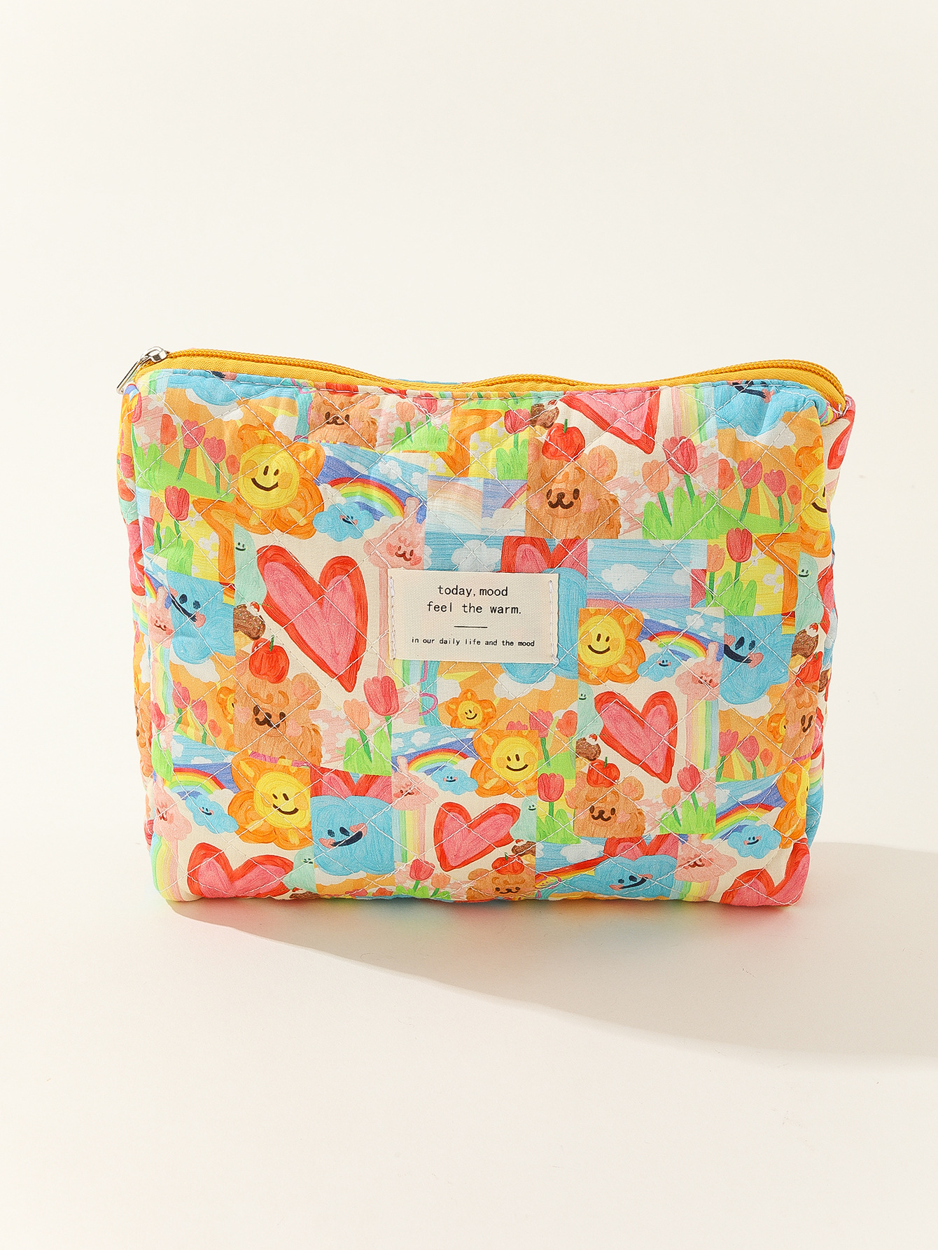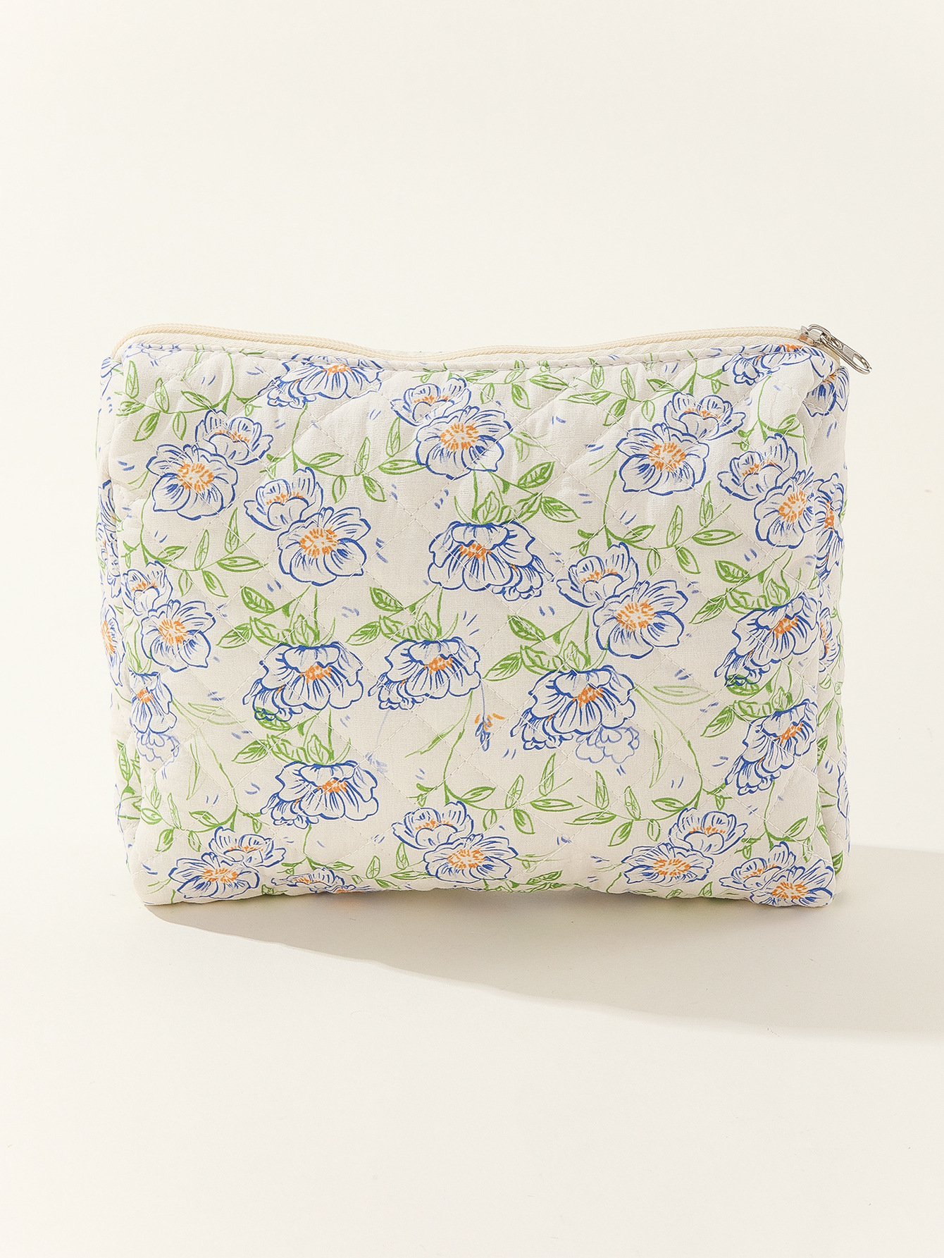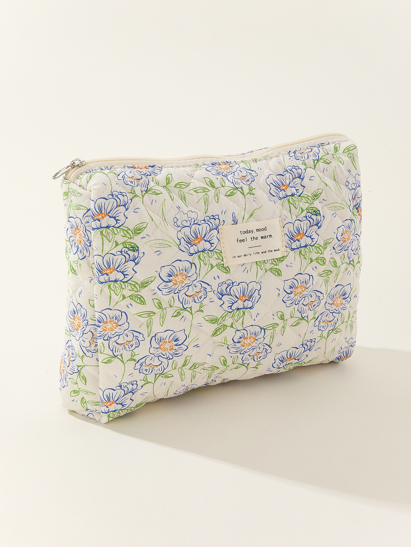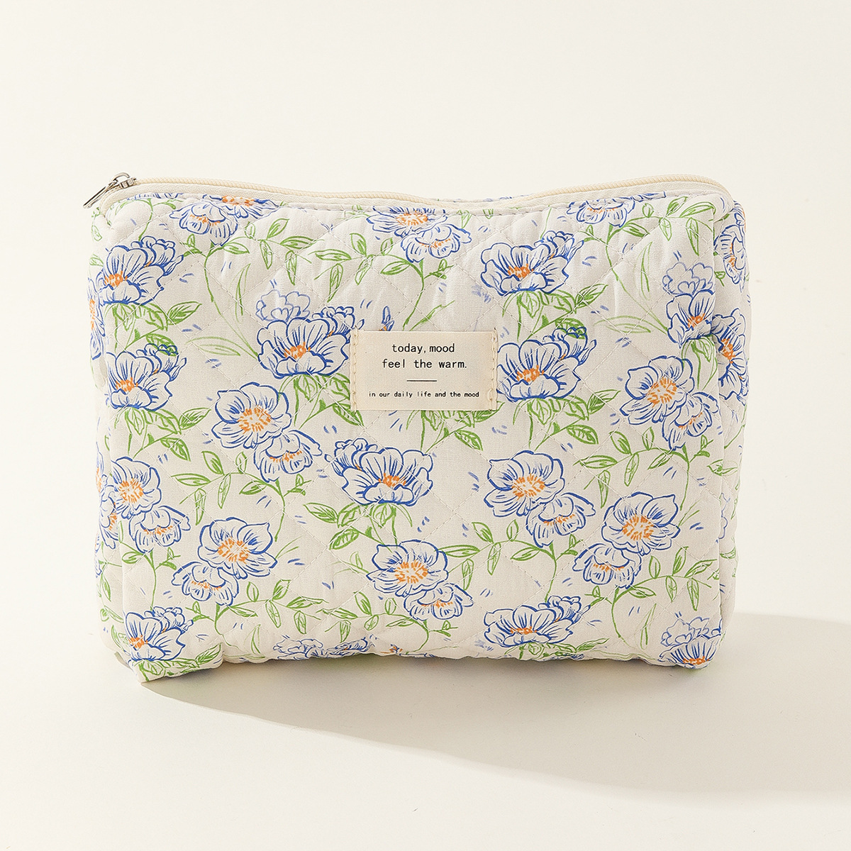 중형 대용량 화장품 가방 라이너 가방 스트라이프 폴카 도트 수납 휴대용 퀼트 코튼 귀여운 꽃 여행