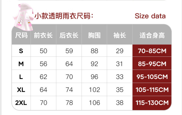 • 핑크 [딸기 토끼 비옷] 크기 참조 옵션 차트