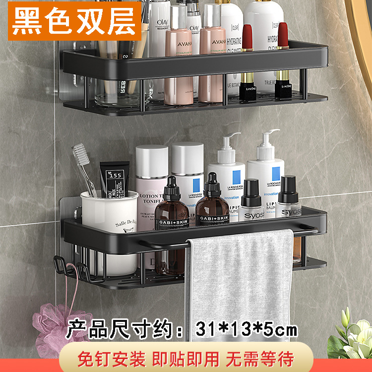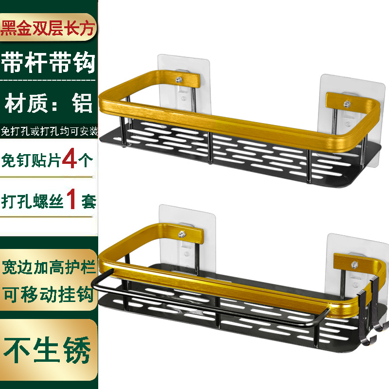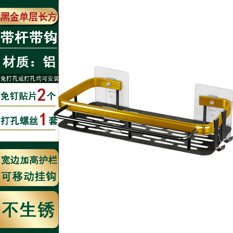 엑셀 욕실 공간 알루미늄 직사각형 블랙 골드 펀치 프리 흡입식 수납 랙 주방 수납 랙스토어 가기