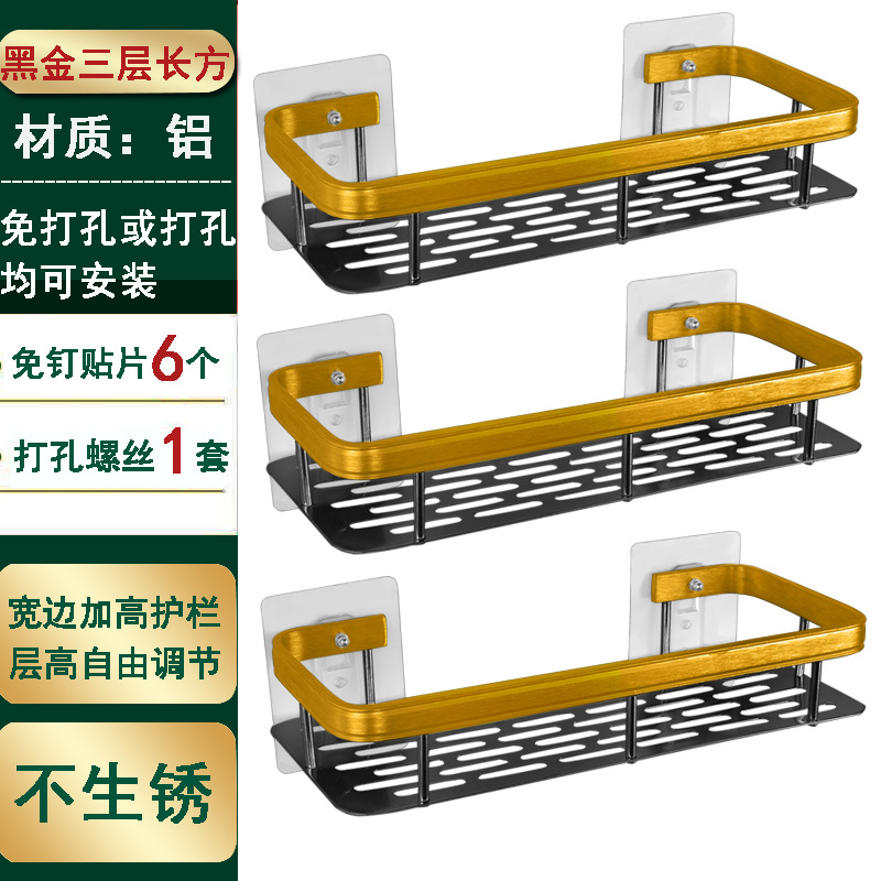 엑셀 욕실 공간 알루미늄 직사각형 블랙 골드 펀치 프리 흡입식 수납 랙 주방 수납 랙
