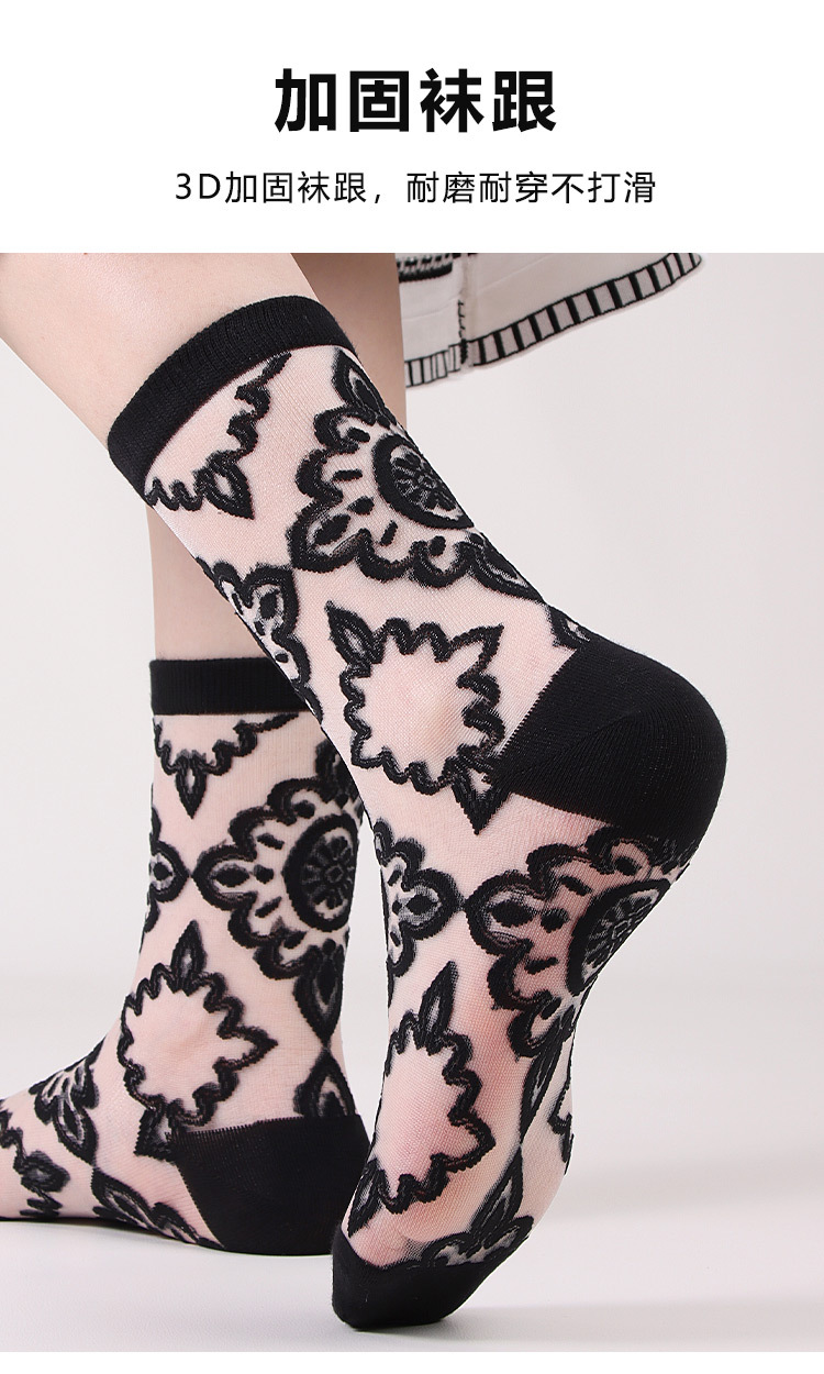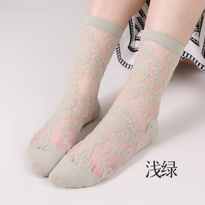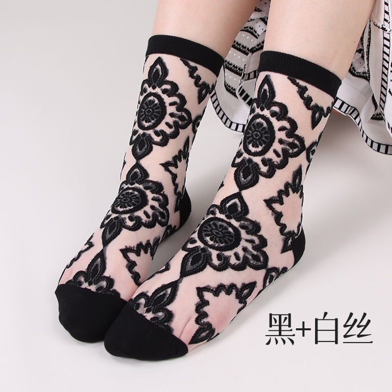 마스터 카드 봄과 여름 새로운 빈티지 꽃 크리스탈 실크 튜브 여성 양말 패션 얇은 유리 실크 여성 양말 어린이 도매스토어 가기