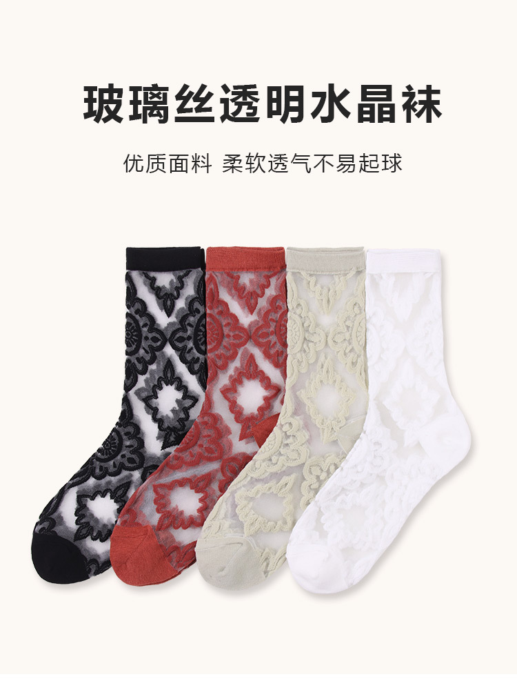 마스터 카드 봄과 여름 새로운 빈티지 꽃 크리스탈 실크 튜브 여성 양말 패션 얇은 유리 실크 여성 양말 어린이 도매