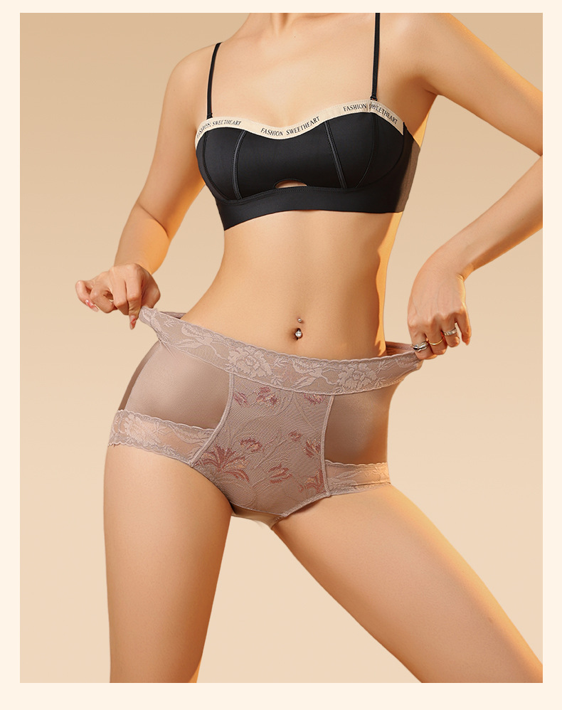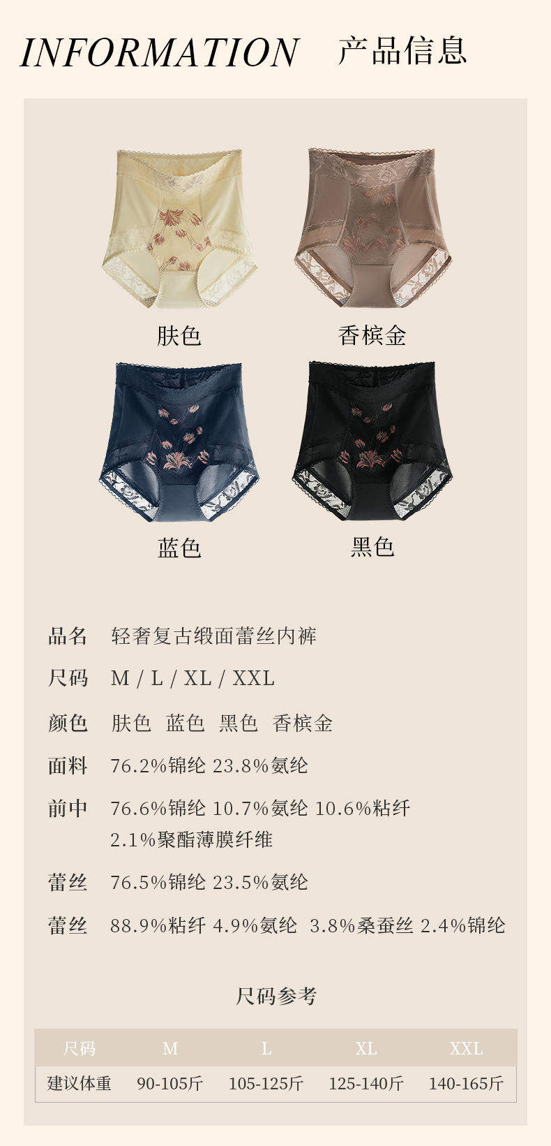 # 2328 # 여성용 심리스 뱃살 조절 하이웨이스트 팬티, 실키 새틴 레이스 힙 커버, 멀버리 실크 가랑이 팬티 공장