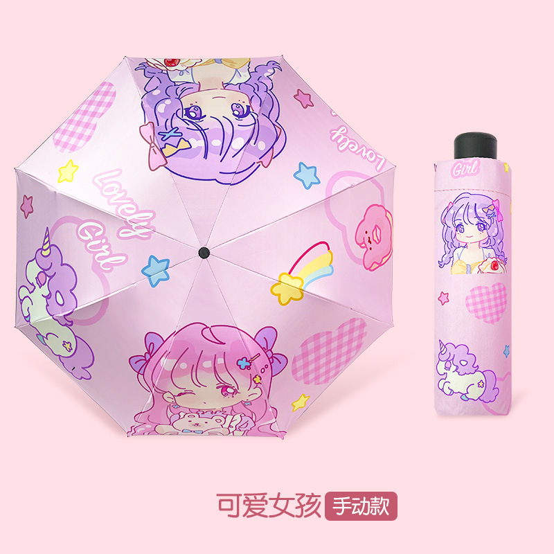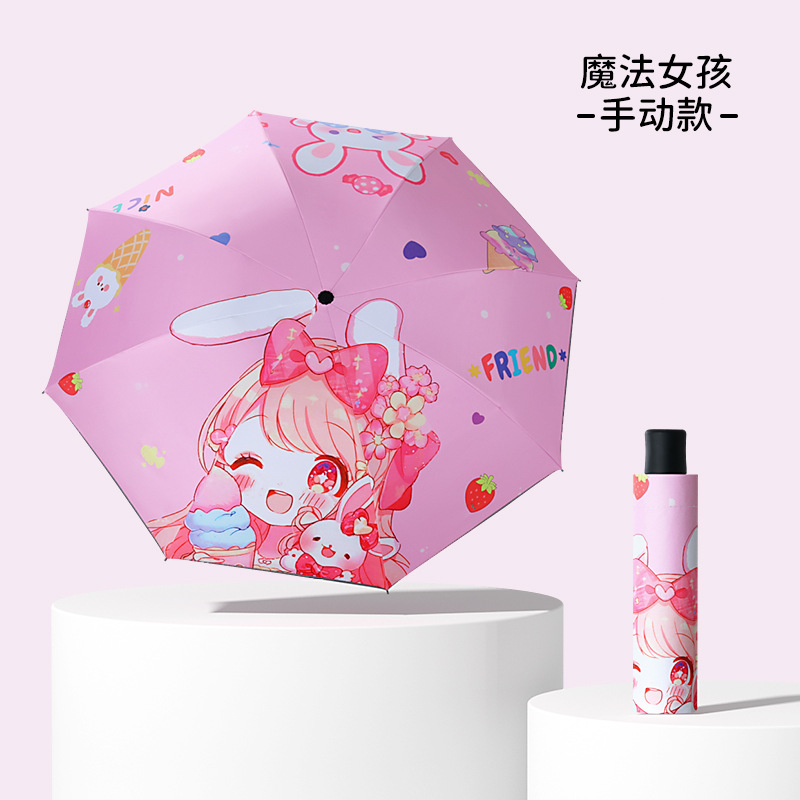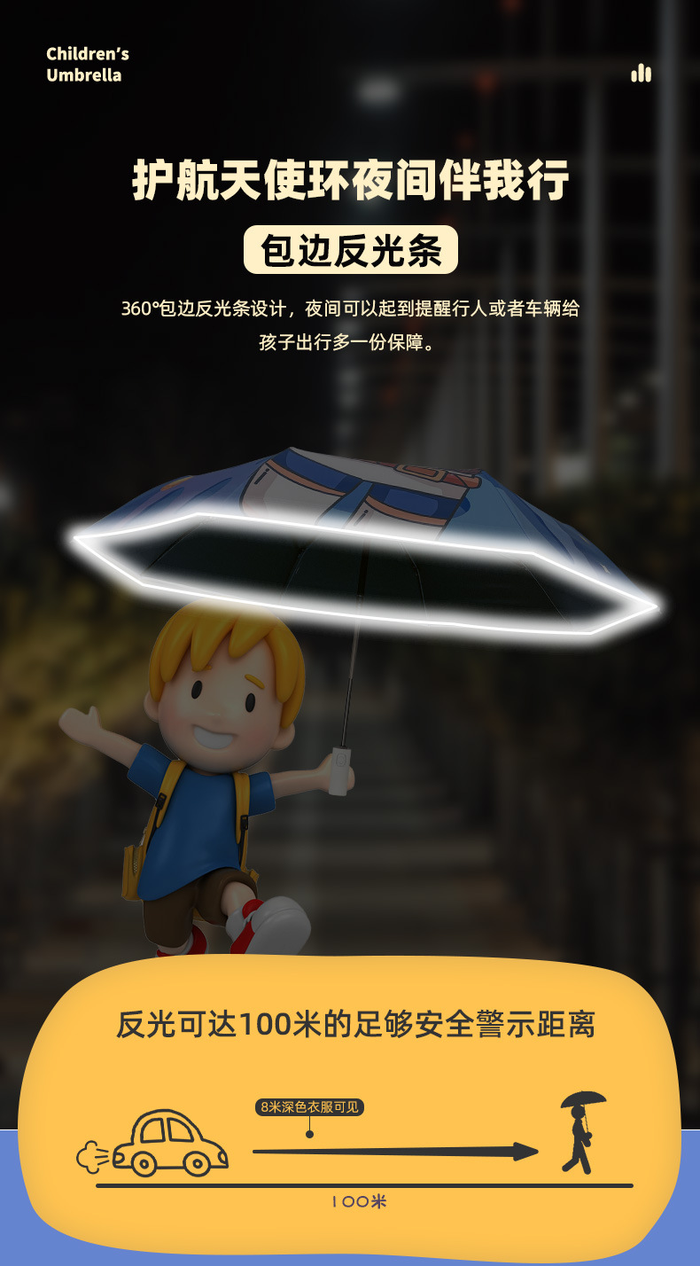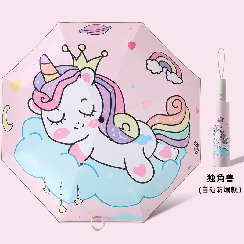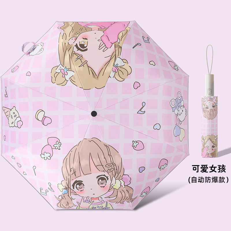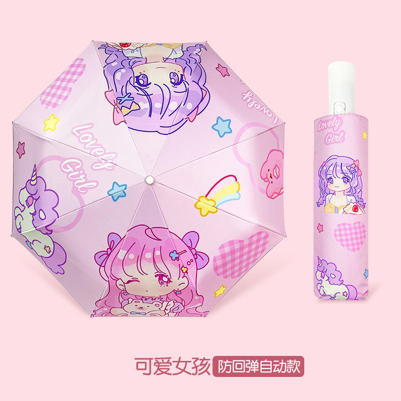 만화 어린이 우산 자동 반동 방지 안전 안전 써니 우산 접히는 햇빛 그늘 반사 우산 학생용