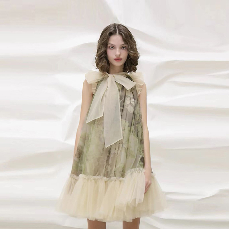 YT139042 차 휴식 프랑스어 스타일 요정 슈퍼 요정 모리 스타일 짧은 목 원피스 여름 요정 원피스 원사 스커트