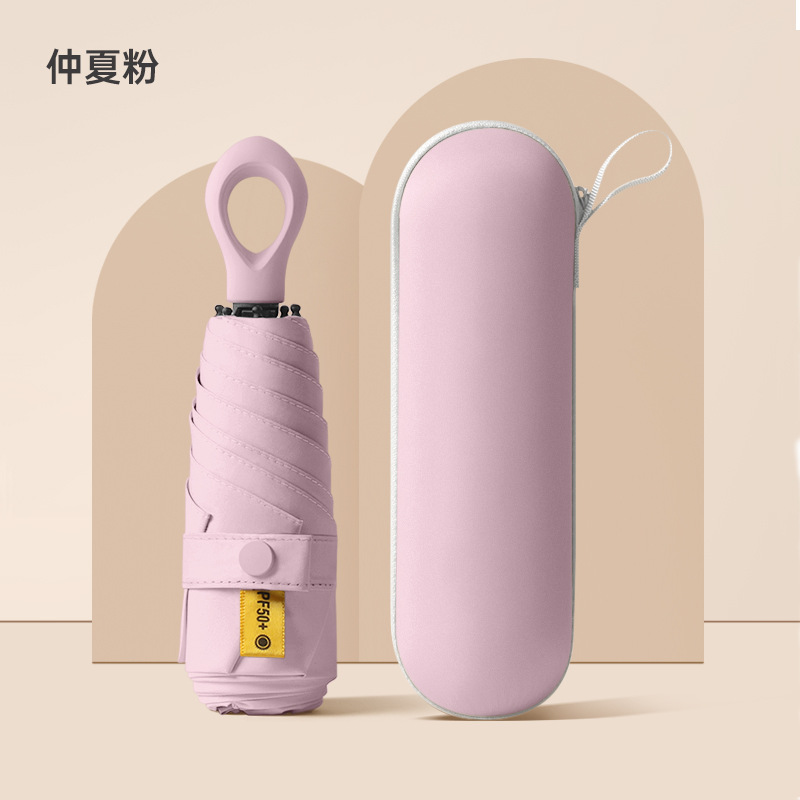 • 곡선형 후크 손잡이가 있는 6본 캡슐 우산 - 사쿠라 핑크