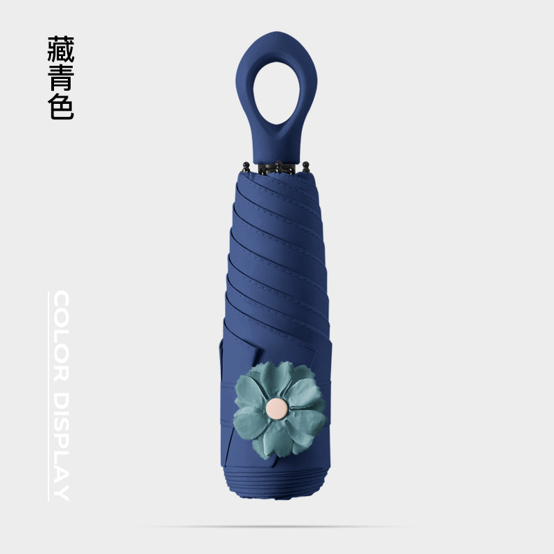 • [두꺼운 검은 접착제] 6-뼈 꽃 반지 우산-네이비