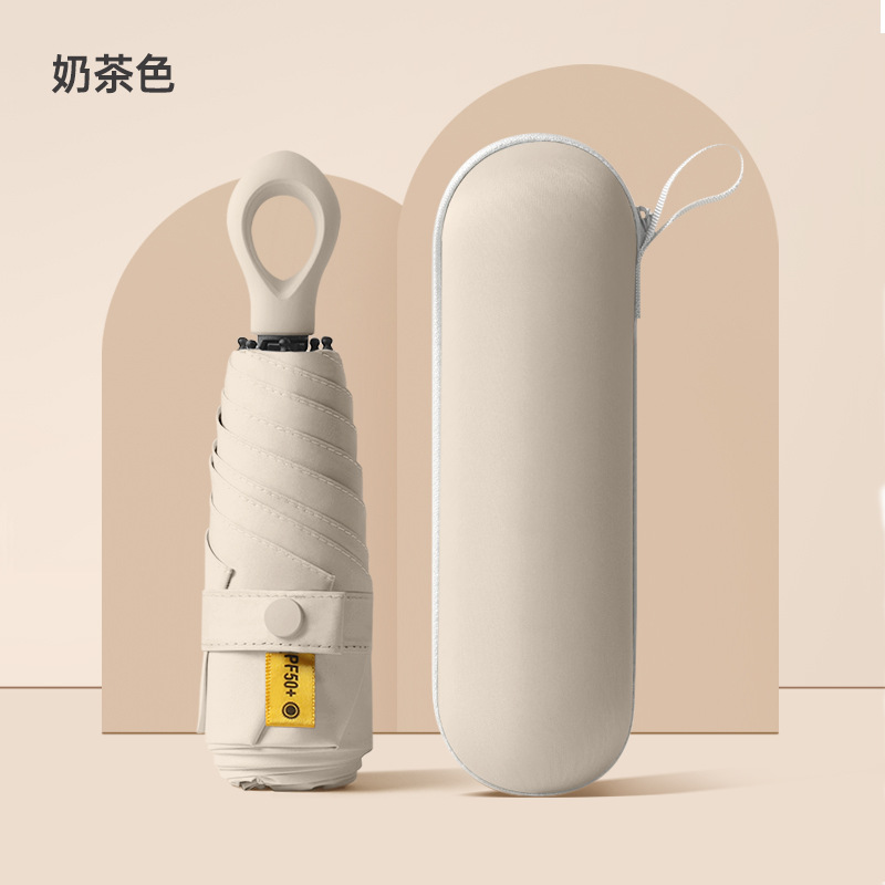 • [두꺼운 검은 접착제] 우유 차 색상-6 뼈 캡슐 우산 반지 손잡이