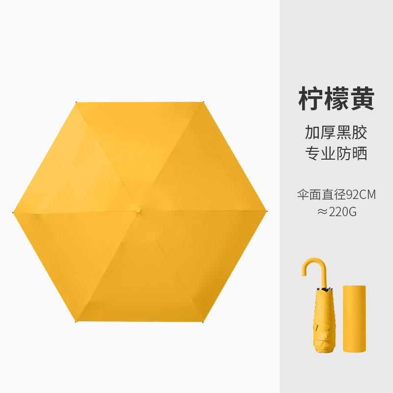 • 곡선형 후크 손잡이가 있는 6본 캡슐 우산 - 레몬 옐로우