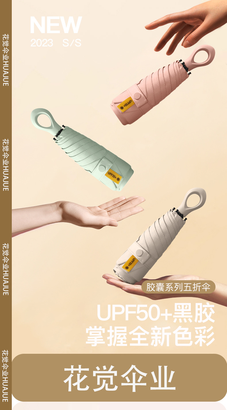 다섯 접은 여섯 뼈 검은 접착제 태양 써니 우산 미니 양산 우산 반지 우산 작은 캡슐 우산 광고 포켓 우산