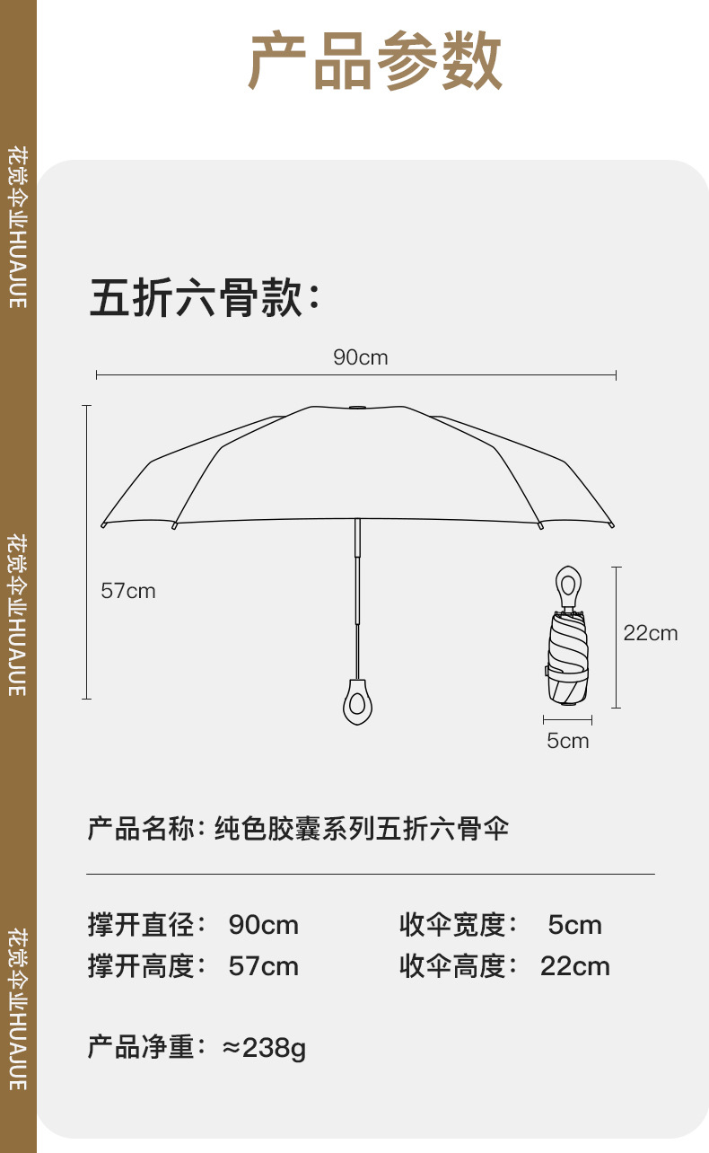 • [두꺼운 검은 접착제] 카키-6 뼈 캡슐 우산 반지 손잡이