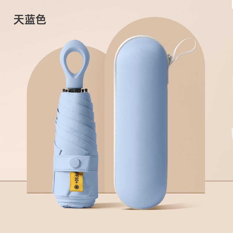 • 후크 손잡이가 곡선인 6본 캡슐 우산 - 하늘색