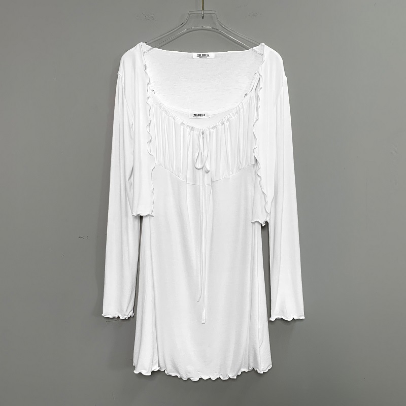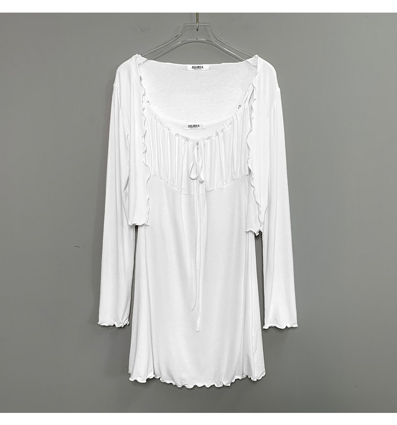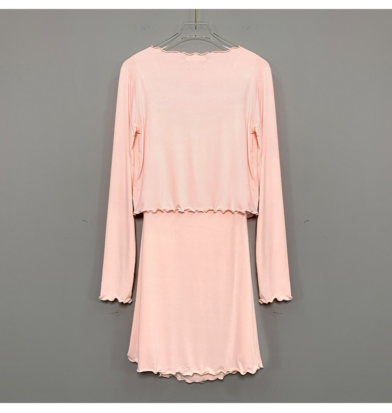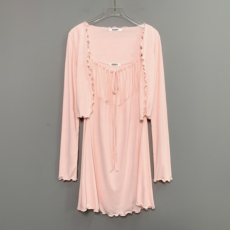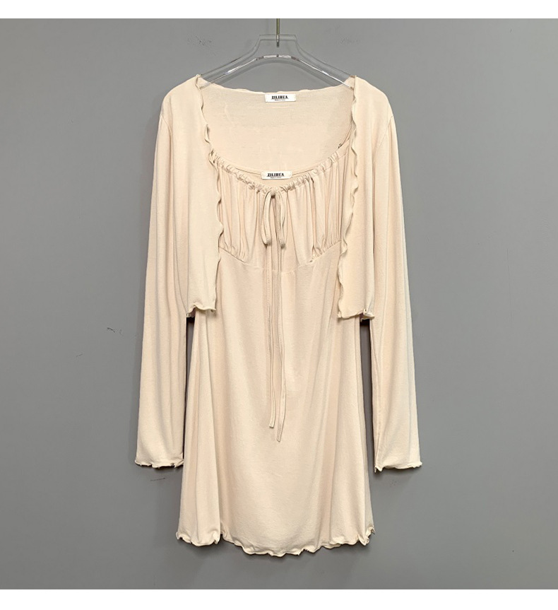 한국 동대문 슬림핏 섹시 피규어 스커트 우드이어 스트랩 + 얇은 긴팔 선크림 셔츠 여성용 투피스 세트