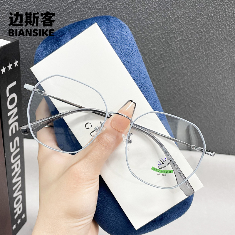 새로운 여성 문학 패션도 장착 가능 일반 금속 다각형 눈 프레임 큰 얼굴 얇은 남성 D80006스토어 가기