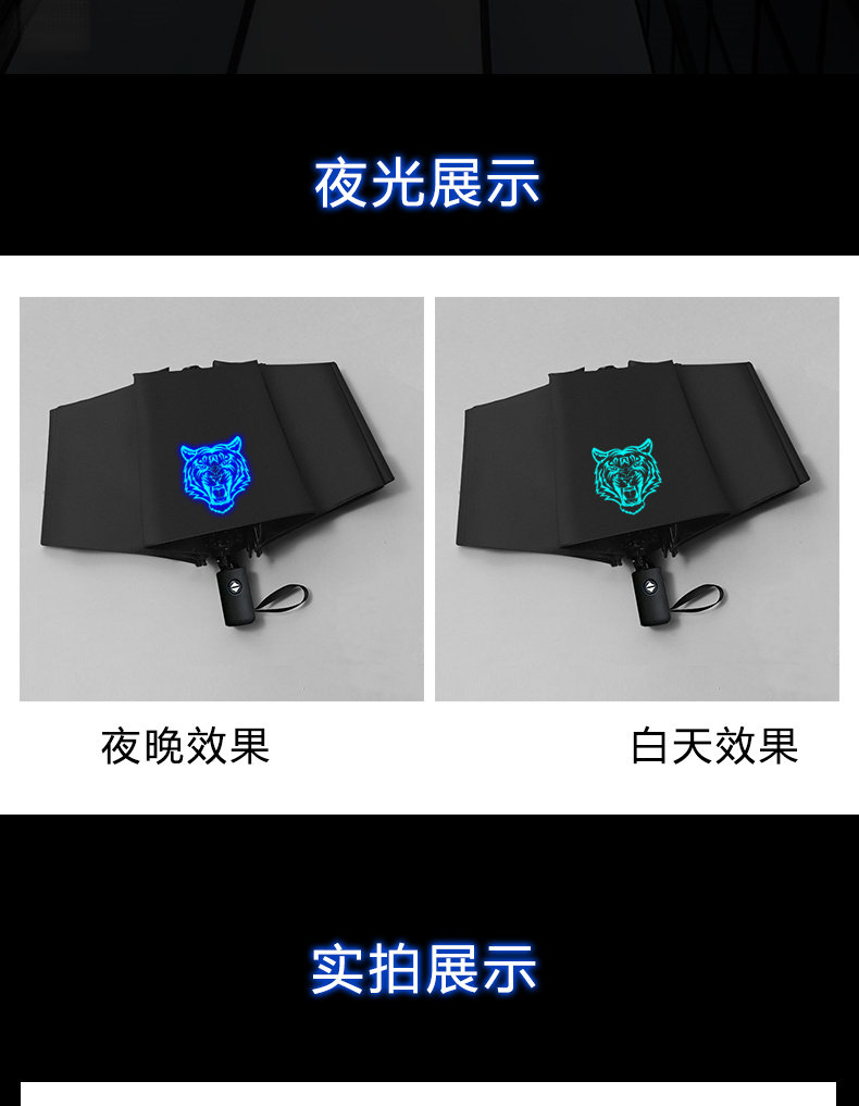 BK9K 도매 호랑이 머리 중학생을위한 자동 써니 우산 간단한 큰 아이들 3 접는 유행 남자의 이중 사용 검은 접착제 안티 UV