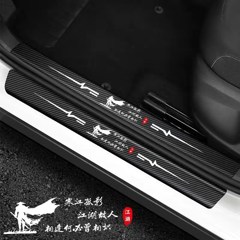 자동차 창틀 바 보호 바 탄소 섬유 패턴 안티 스테핑 스크래치 방지 도어 페달 장식 귀여운 만화 창틀 바 스티커