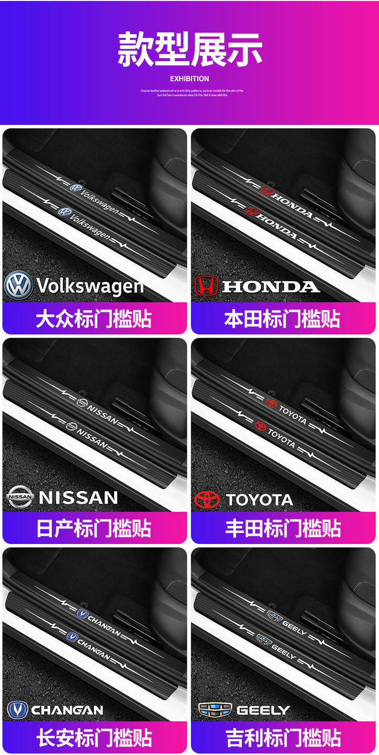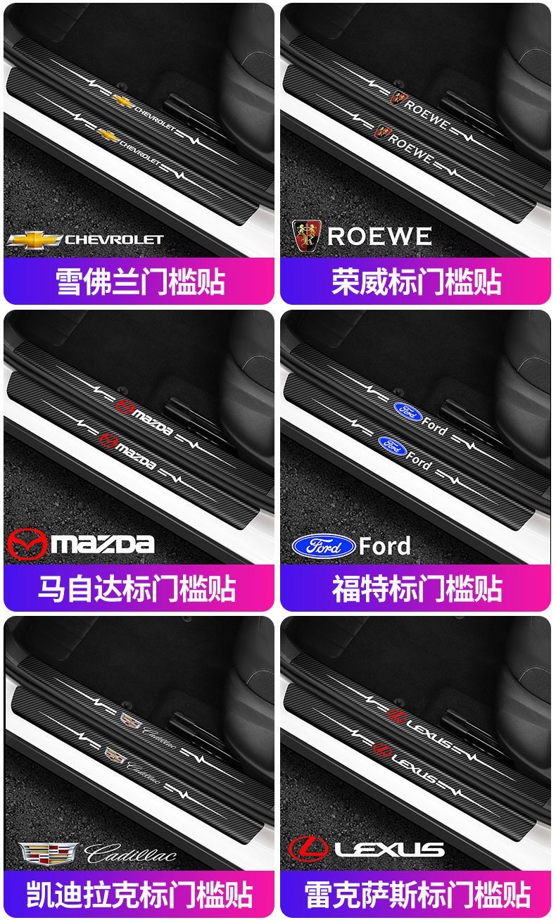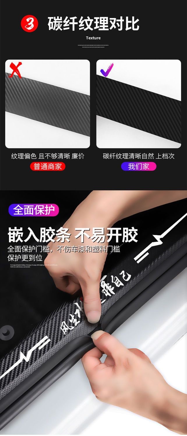 자동차 창틀 바 보호 바 탄소 섬유 패턴 안티 스테핑 스크래치 방지 도어 페달 장식 귀여운 만화 창틀 바 스티커스토어 가기