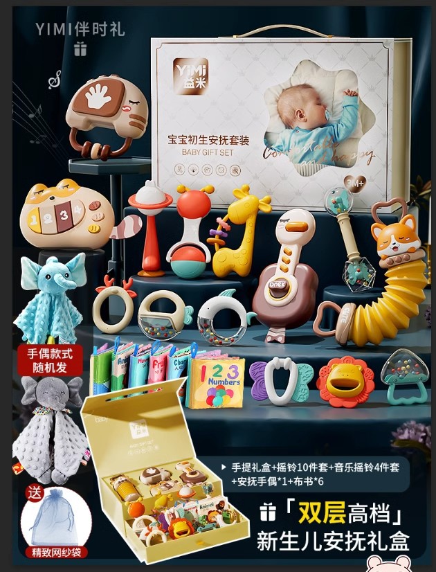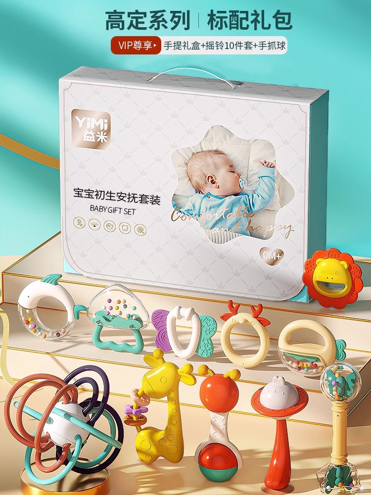 Yimi 작은 빨간 승마 책 같은 신생아 선물 보름달 선물 13 세트의 손 딸랑이가 물릴 수 있습니다 진정 선물 상자 장난감스토어 가기