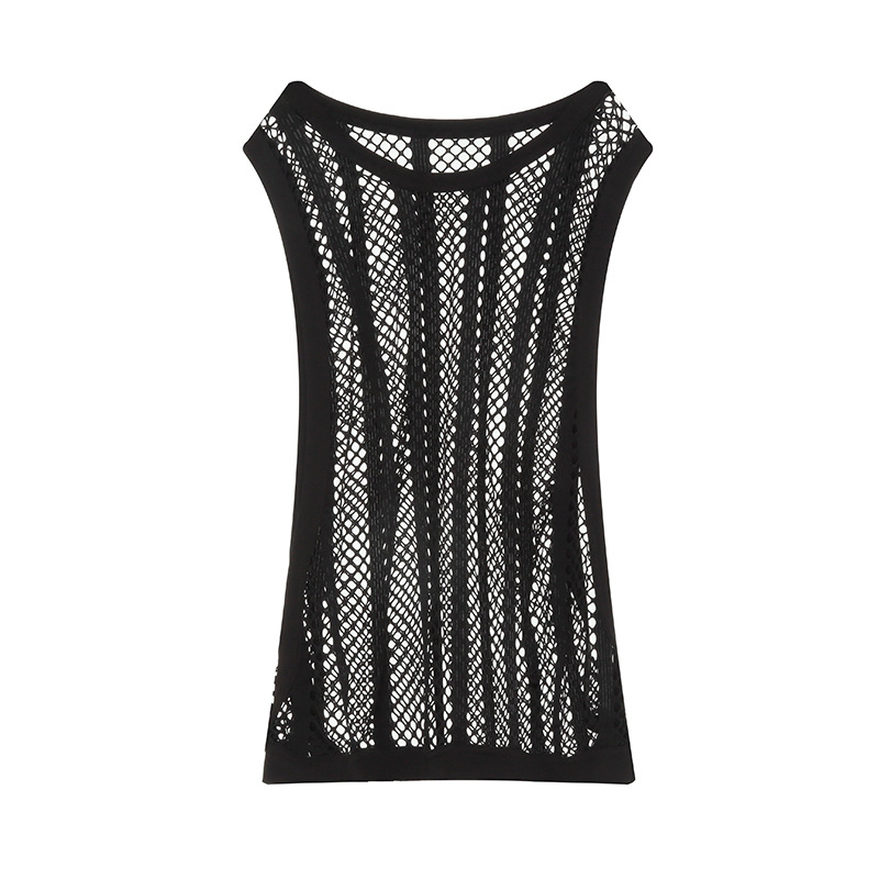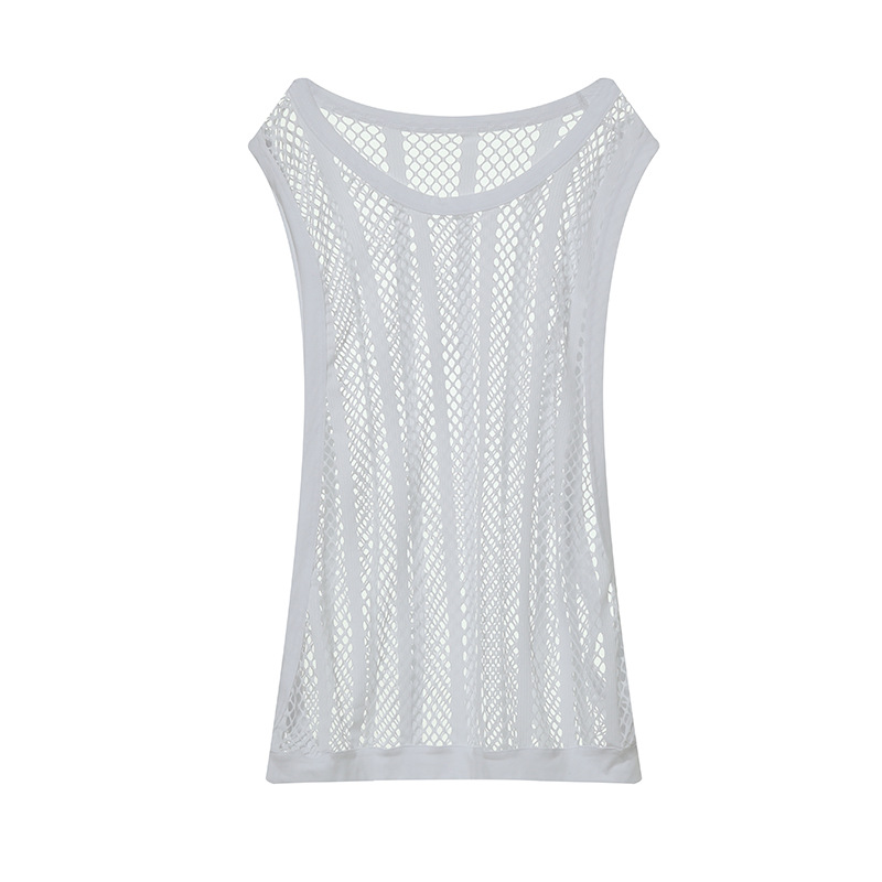 여름 메쉬 분할 남자의 조끼 청소년 섹시한 단색 캐주얼 통기성 라운드 넥 스포츠 느슨한 상단 도매