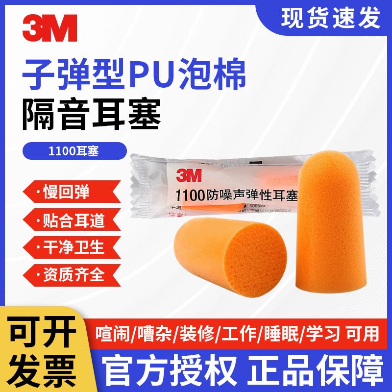 3M 1100 작업 연구 총알형 소음 방지 pu 스폰지 귀마개 312-1250 수면 방음 귀마개스토어 가기
