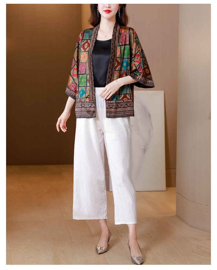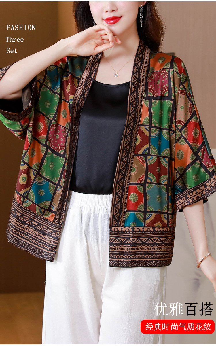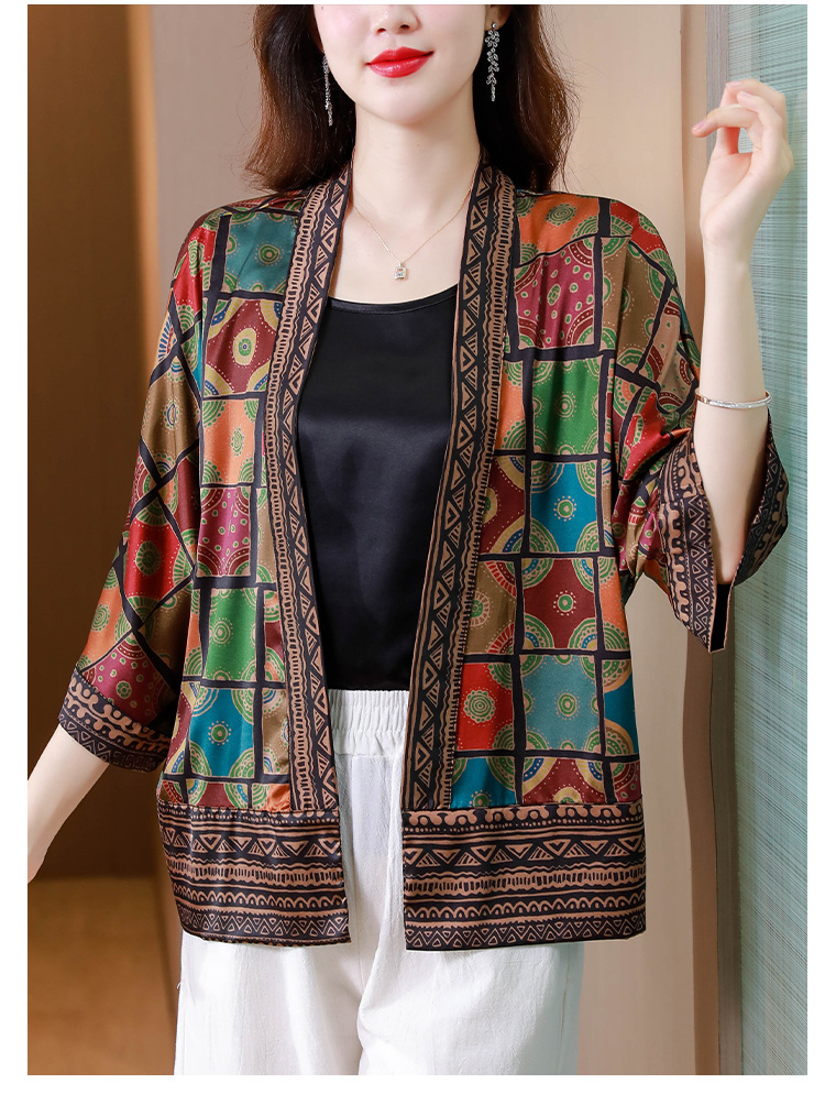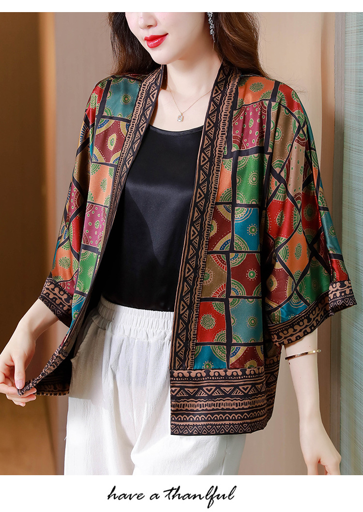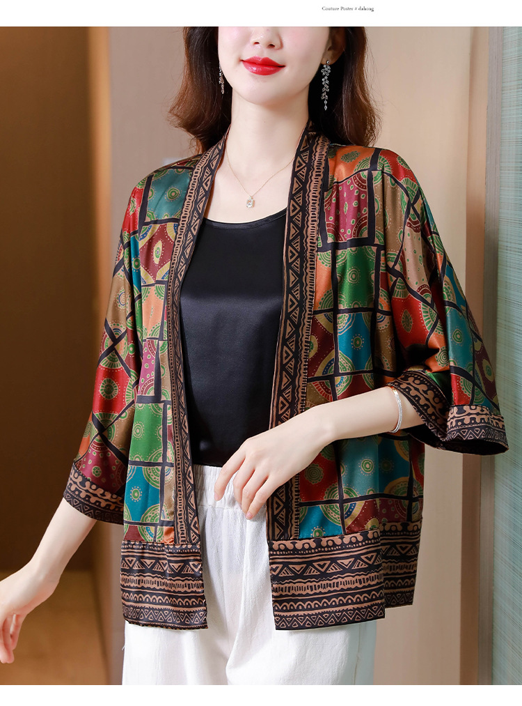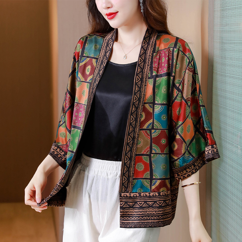 봄/여름 2023 Kuo 아내 쇼트 코트 여성용 모조 실크 Xiangyun 원사 작은 가디건 어머니의 자외선 차단제 카디건 외부스토어 가기