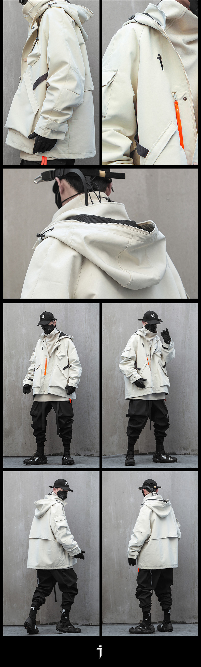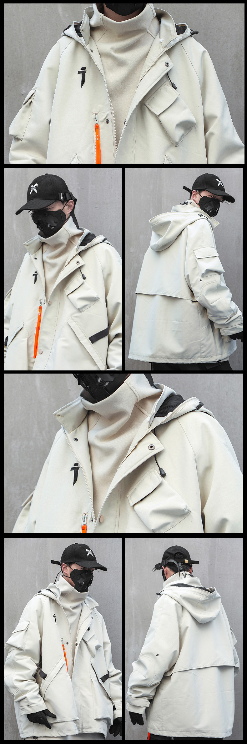 Jiye 중공업 기능성 스타일 남성과 여성을위한 소형 수직 칼라 후드 충전 의류 작업복 재킷 캐주얼 재킷 두꺼운 면 패딩 재킷스토어 가기