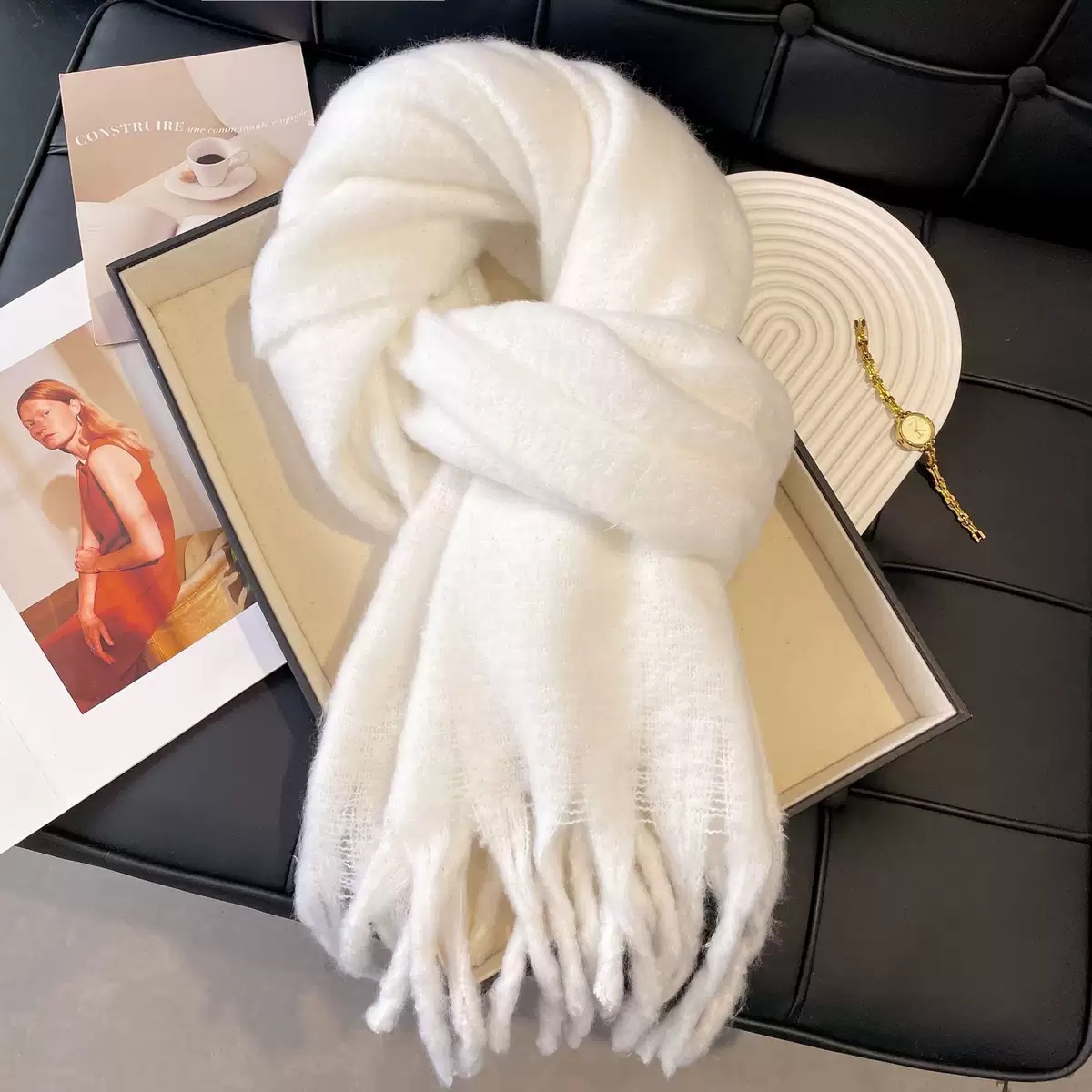 • [퓨어 화이트] 루프 원사 단색 스카프