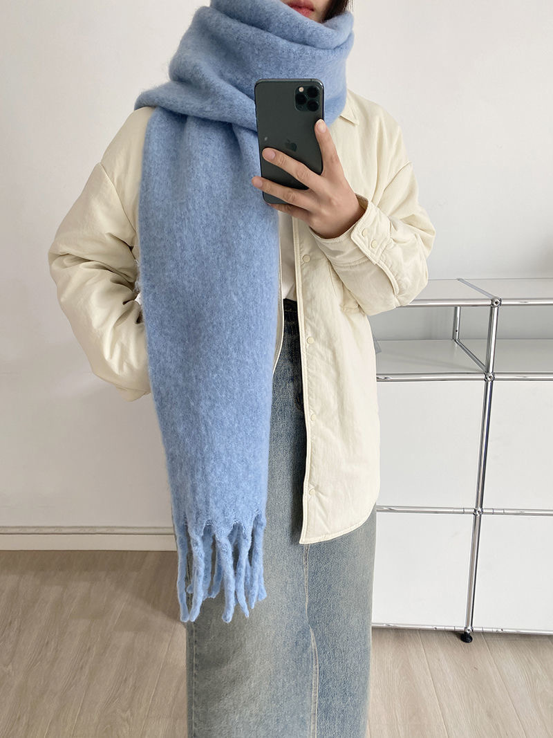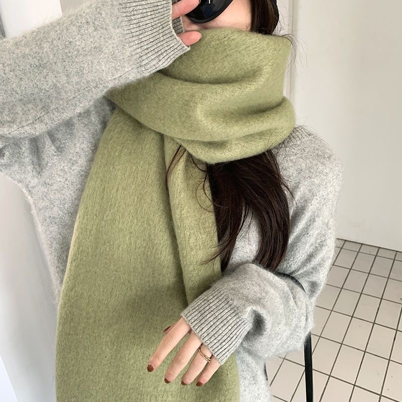 소프트 왁스 새로운 단색 스카프 여성 학생 꿈 마카롱 색상 겨울 두꺼운 루프 원사 숄 따뜻한 커플