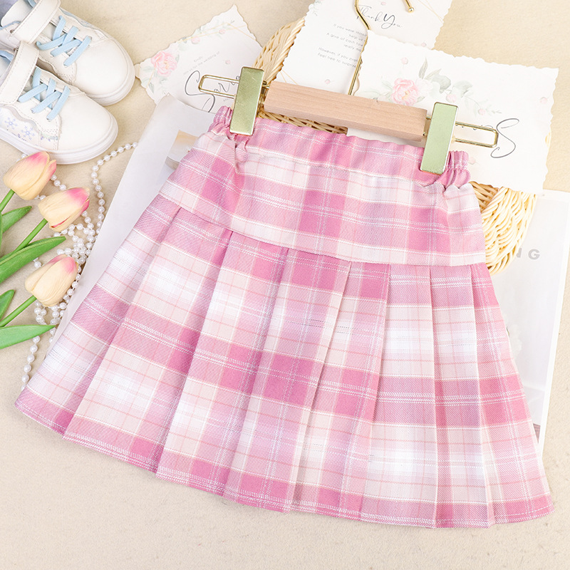 소녀의 공주 원피스 여름 2023 새로운 어린이 세련된 스커트 소녀의 짧은 스커트 패션 세련된 격자 무늬 jk 스커트