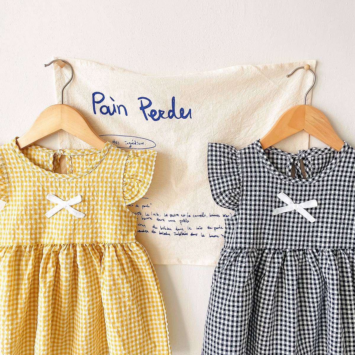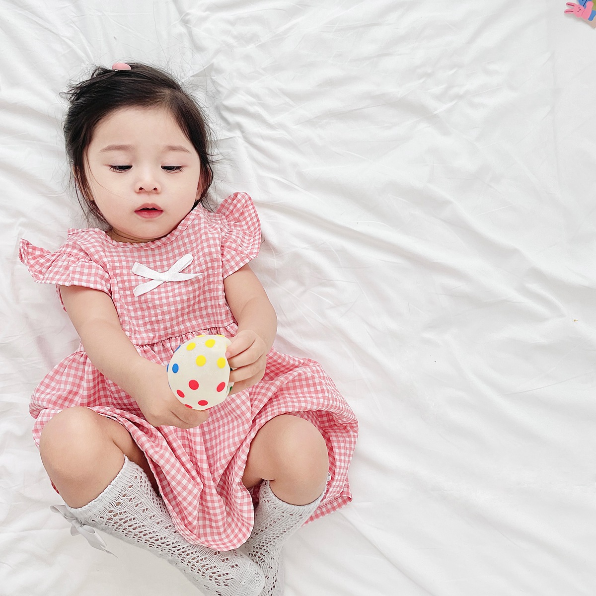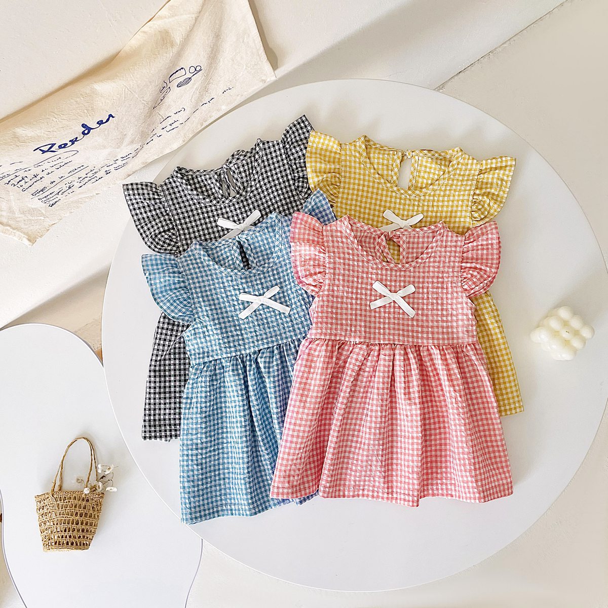 여자 원피스 여름 격자 무늬 아기 소녀 옷 아동복 한국 스타일 휴가 스타일 아기 공주 비치 원피스