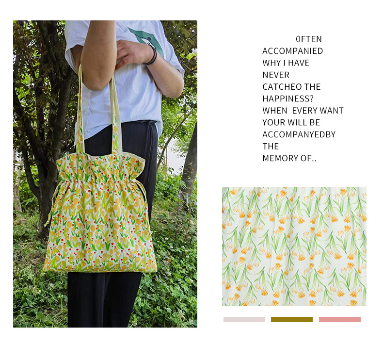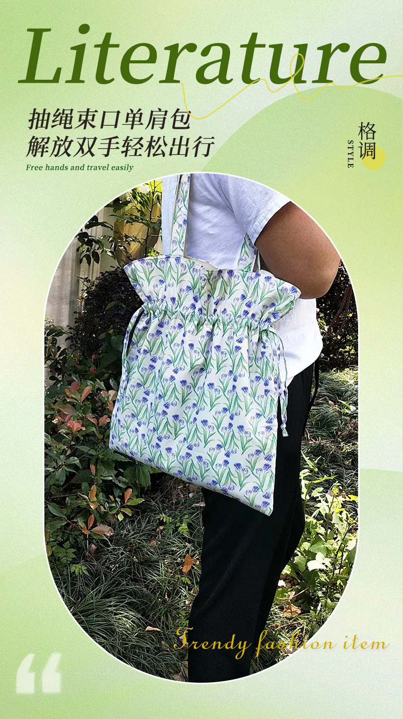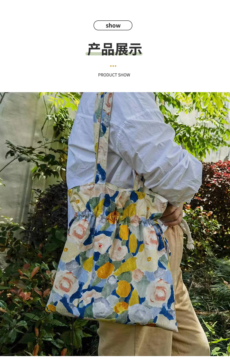 신선한 스타일 예술적 소녀의 숄더 백 일본식 귀여운 대용량 인쇄 핸드백 캔버스 코튼 백스토어 가기