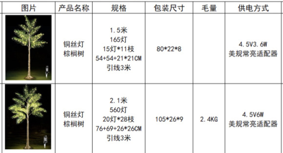 야자수 조명 거실 안뜰 시뮬레이션 풍경 장식 나무 구리 와이어 조명 휴일 파티 장면 레이아웃 빛나는 나무 조명