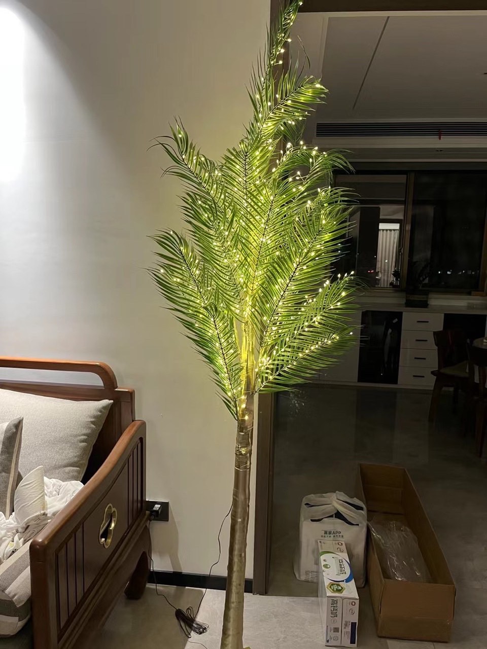 야자수 조명 거실 안뜰 시뮬레이션 풍경 장식 나무 구리 와이어 조명 휴일 파티 장면 레이아웃 빛나는 나무 조명스토어 가기