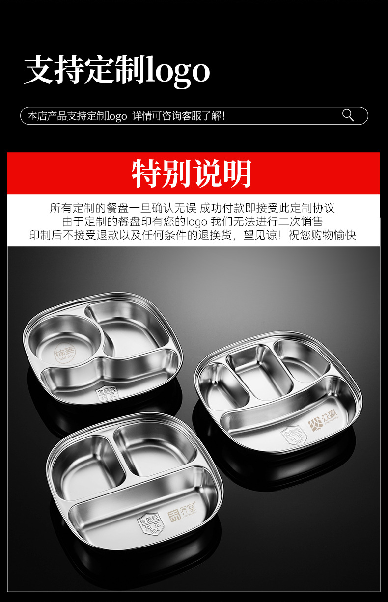 304 스테인레스 스틸 어린이 디너 플레이트 가정용 식품 학년 아기 분할 접시 유치원 초등학교 분리 접시스토어 가기
