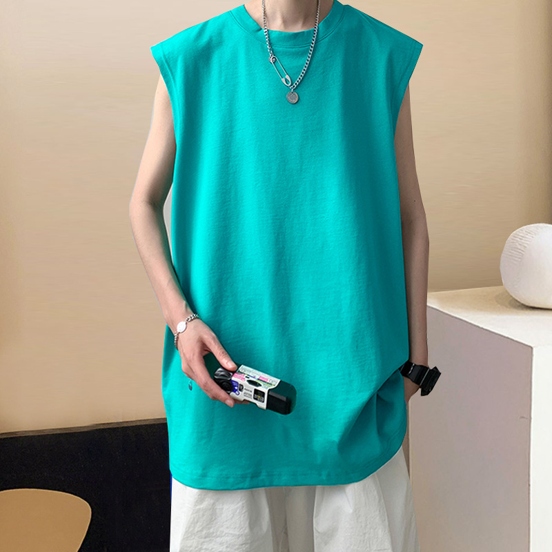 공장 직접 여름 미국 힙합 조끼 남자 2023 새로운 단색 심플 모든 경기 민소매 탑 여성스토어 가기