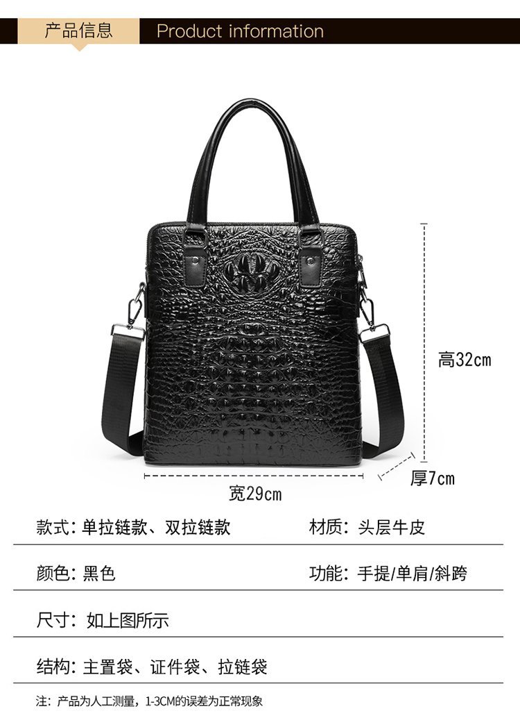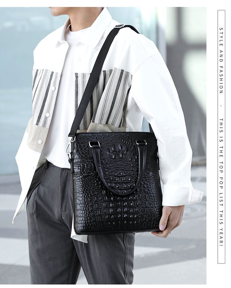 2023 새로운 악어 패턴 정품 가죽 남성용 핸드백 새로운 비즈니스 탑 레이어 소가죽 서류 가방 심플하고 우아한스토어 가기